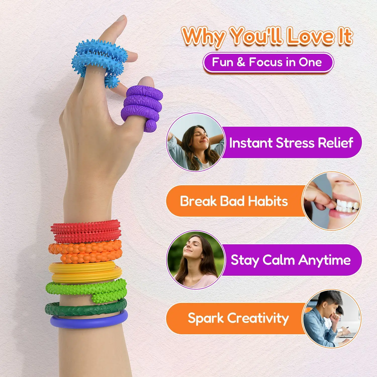 Comprar 8 Uds. De juguetes flexibles de silicona texturizados para niños y adultos, alivio de la ansiedad, juguete sensorial para el estrés, habilidades motoras finas, regalos de navidad