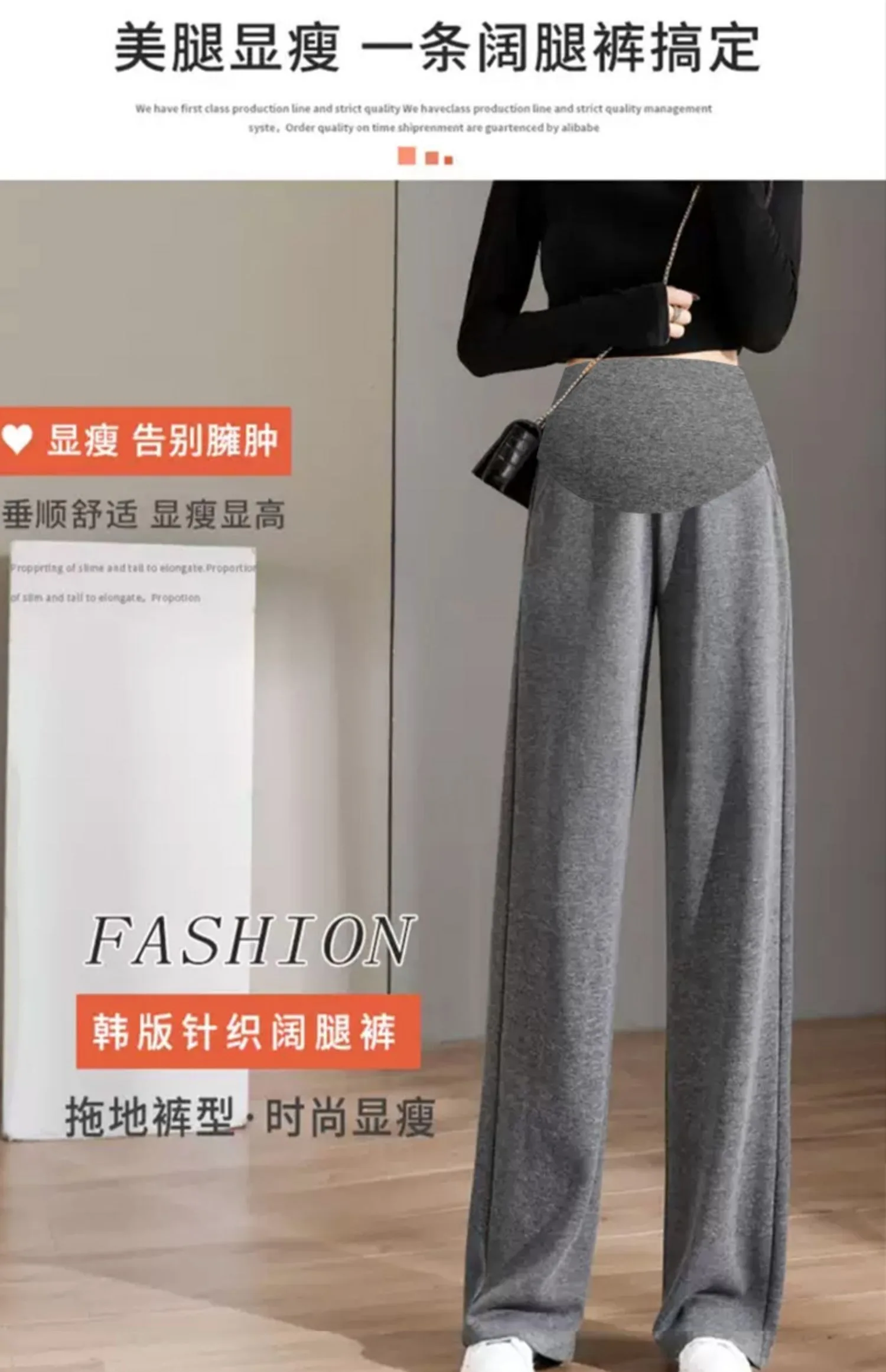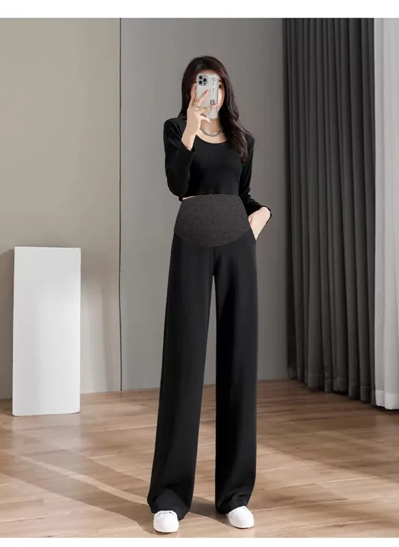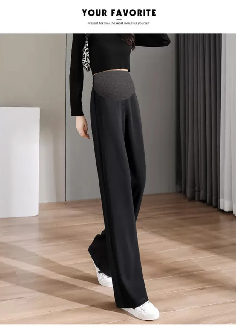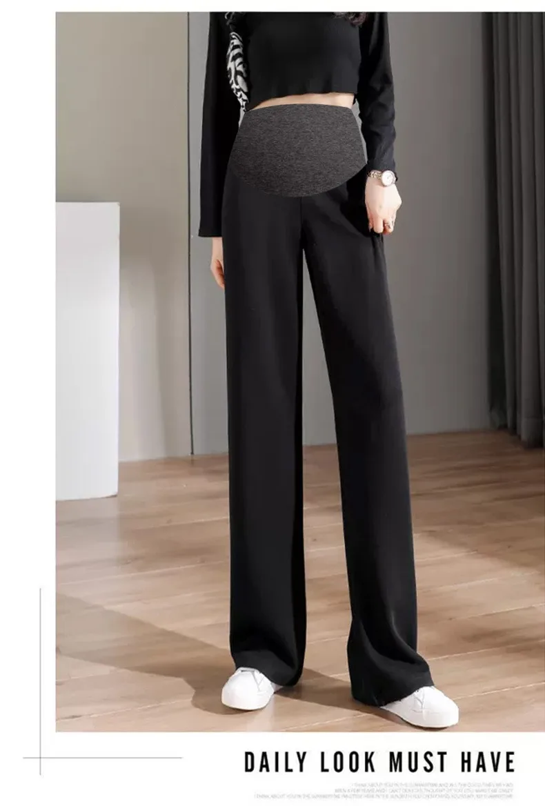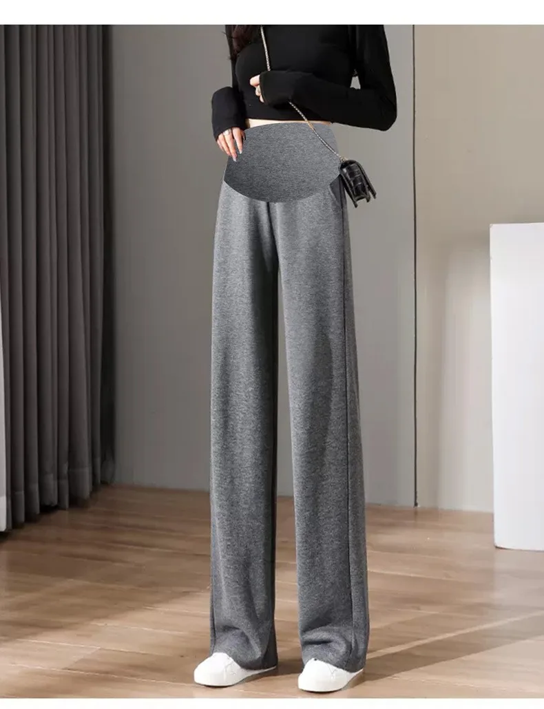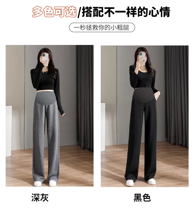 8088 # Pantalones largos rectos de algodón informales para mujer embarazada, ropa holgada de pierna ancha para el vientre, otoño 2022