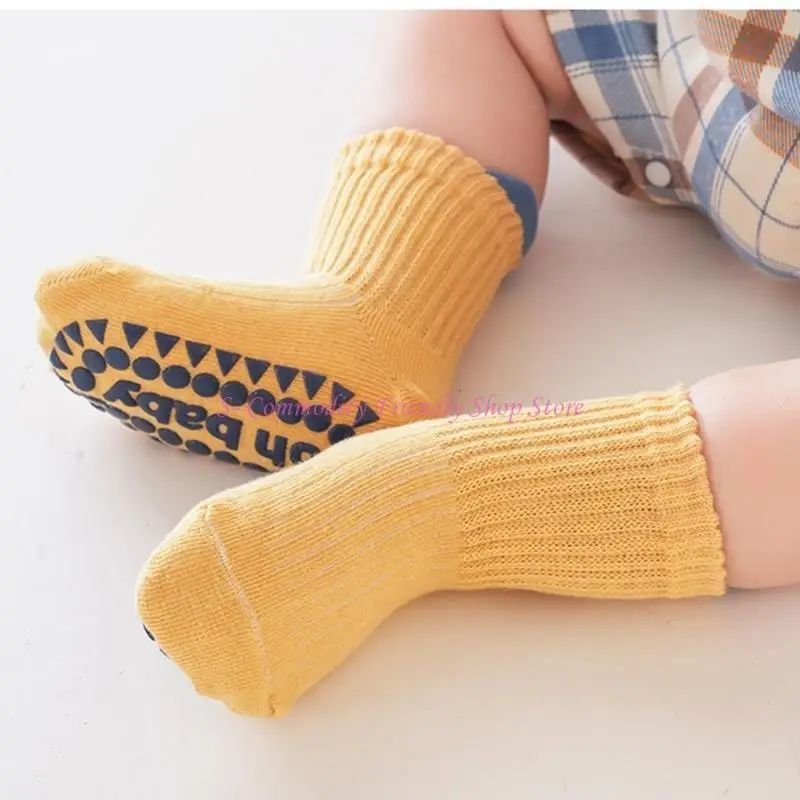 85AE 3 pares calcetines tobilleros para bebé, calcetines agarre elástico alto, calcetines con agarre para niños pequeños,