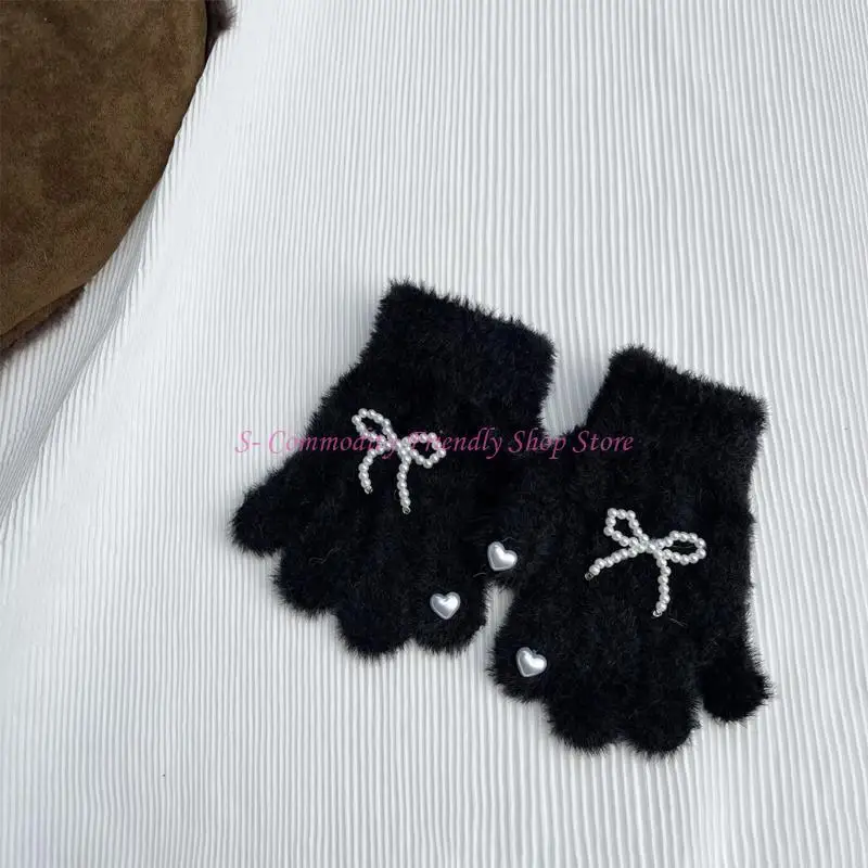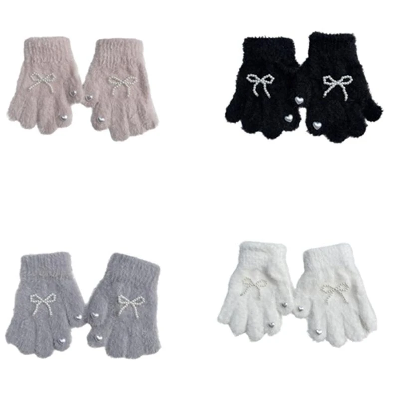 Características:OOTDTYLos guantes tejidos presentan exquisitos adornos de perlas y diseño de lazos, que muestran elegancia y dulzura.