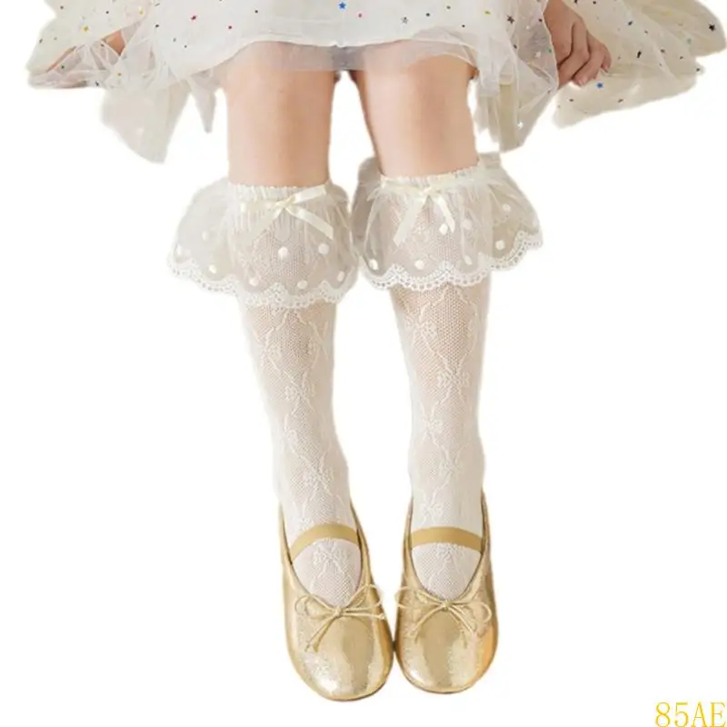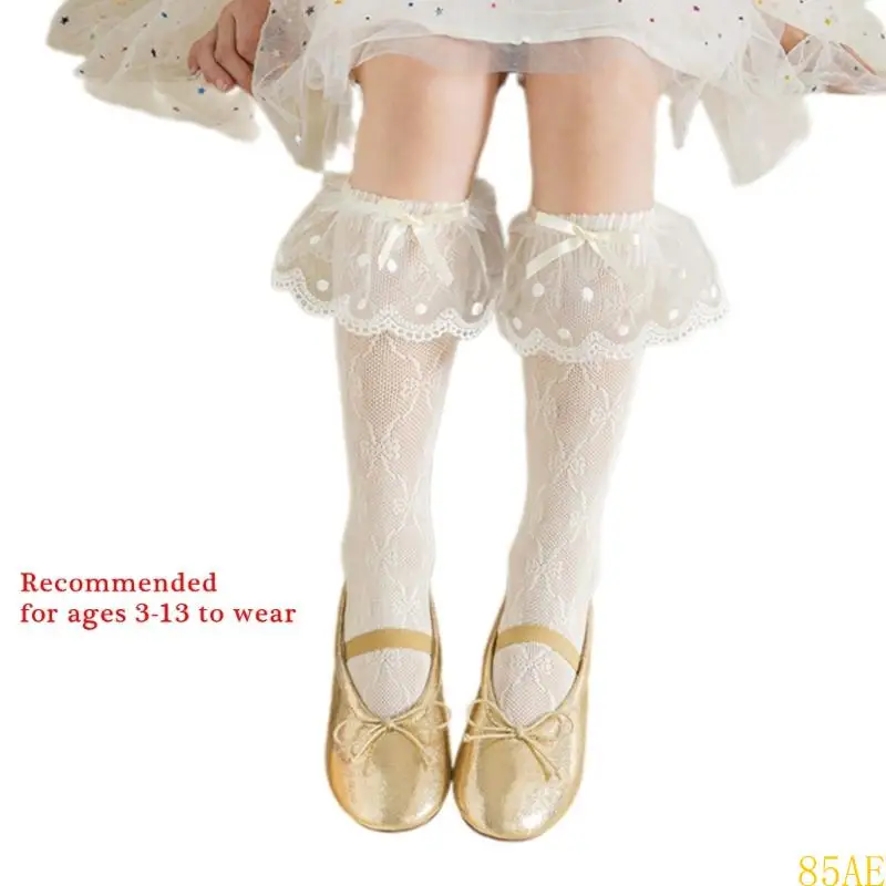 Características:OOTDTYEstos calcetines de pantorrilla media para niños cuentan con un bonito lazo con encaje delicado, que ofrece comodidad y suavidad para los pies de tu pequeño bebé.