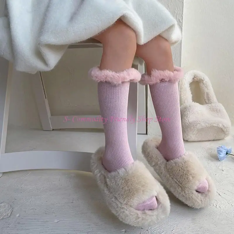 Características:OOTDTYEstos calcetines de algodón para niños cuentan con un diseño de encaje de felpa de color sólido, que agrega un toque de moda a cualquier atuendo.
