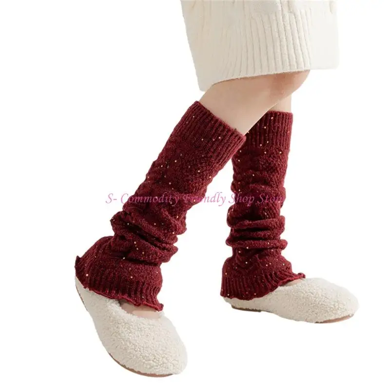 85AE Calentadores piernas suaves Decoración brillante Calcetines elásticos estilo apilado para niñas brillantes