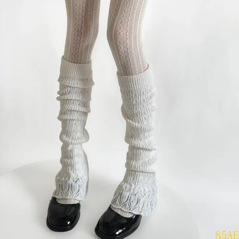 Características:OOTDTYCalentador de piernas de punto de moda, manga de calcetines de primavera y otoño de los años 90, calcetines hasta la pantorrilla tejidos para niñas, calentador de piernas acanalado de tubo largo.