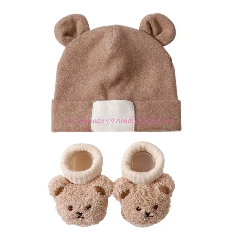 85AE Conjunto gorro y calcetines estilo clásico para bebé recién nacido, suave y elástico para uso diario, bonito gorro