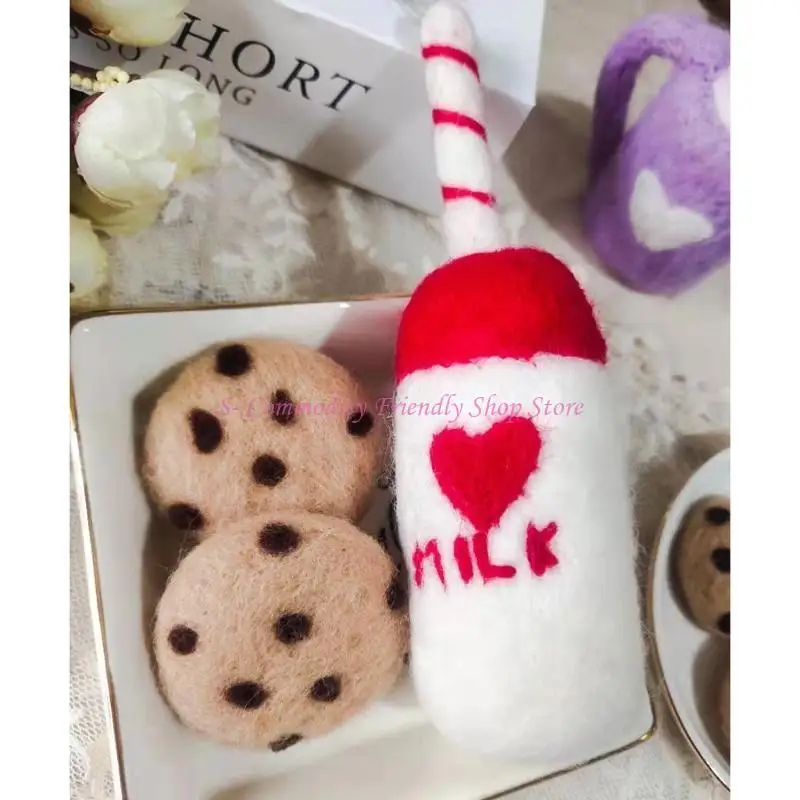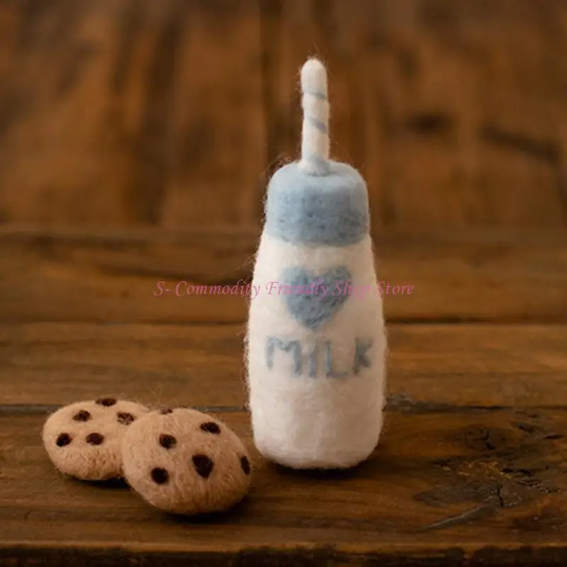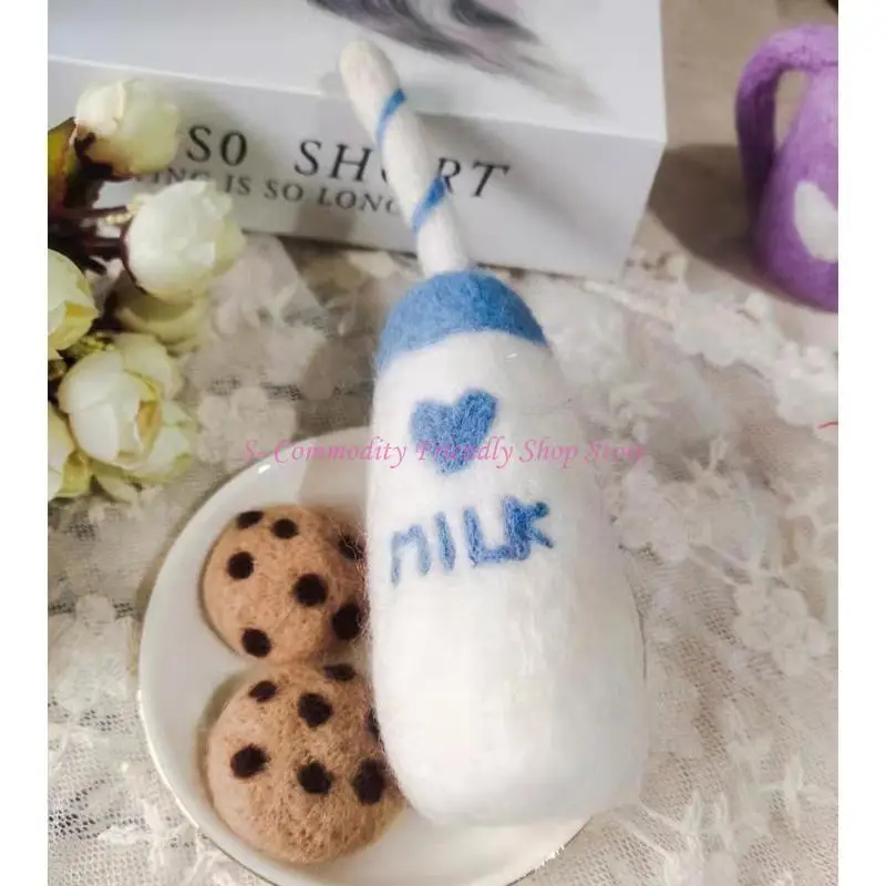 Solo juego de botellas y galletas de leche de fieltro de lana, ¡otros accesorios en la imagen no están incluidos!