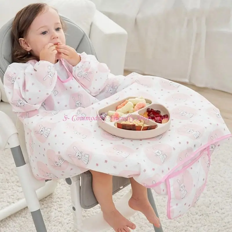 Babero delantal cómodo y fácil de usar: el babero presenta costuras de buena calidad, funciona bien con sillas altas, está equipado con cierres de gancho y bucle que son fáciles de usar o quitar, simplemente cubra la bandeja de la trona y va debajo de la bandeja con una cobertura completa, perfecto para Uso diario de bebés pequeños, asegúrese de que sus hijos pequeños puedan disfrutar de la hora de comer y que los padres se preocupen por el desorden.