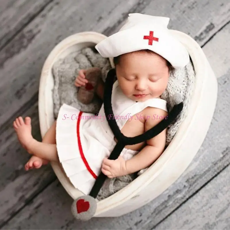 Ya sea una foto profesional o un bricolaje en casa, este conjunto de disfraces de enfermera agrega un toque de ternura y encanto a cualquier escena de fotografía de recién nacidos.