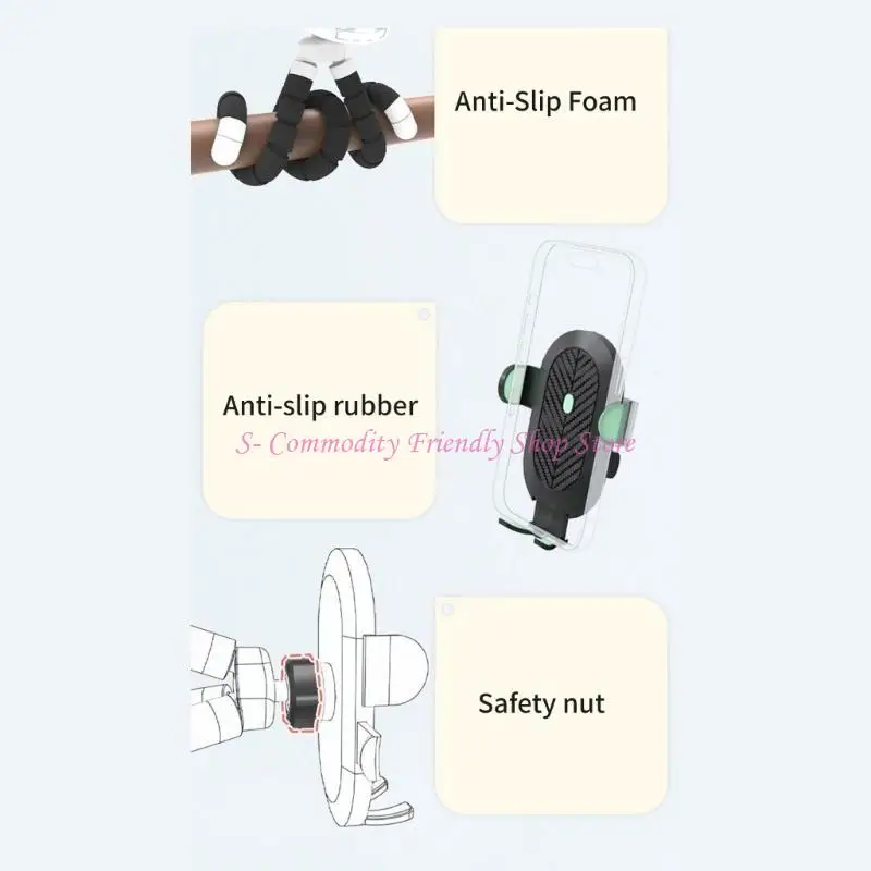 Características:OOTDTYExperimente una flexibilidad incomparable con nuestro soporte para teléfono para cochecito de bebé, cuenta con un brazo múltiple único que se adapta a varias superficies para una colocación segura del teléfono.