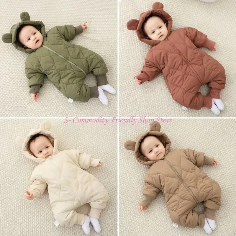 85AE Trajes cálidos Mono con capucha para bebé, mono manga larga para niño y niña, ropa, mameluco, traje nieve, abrigo