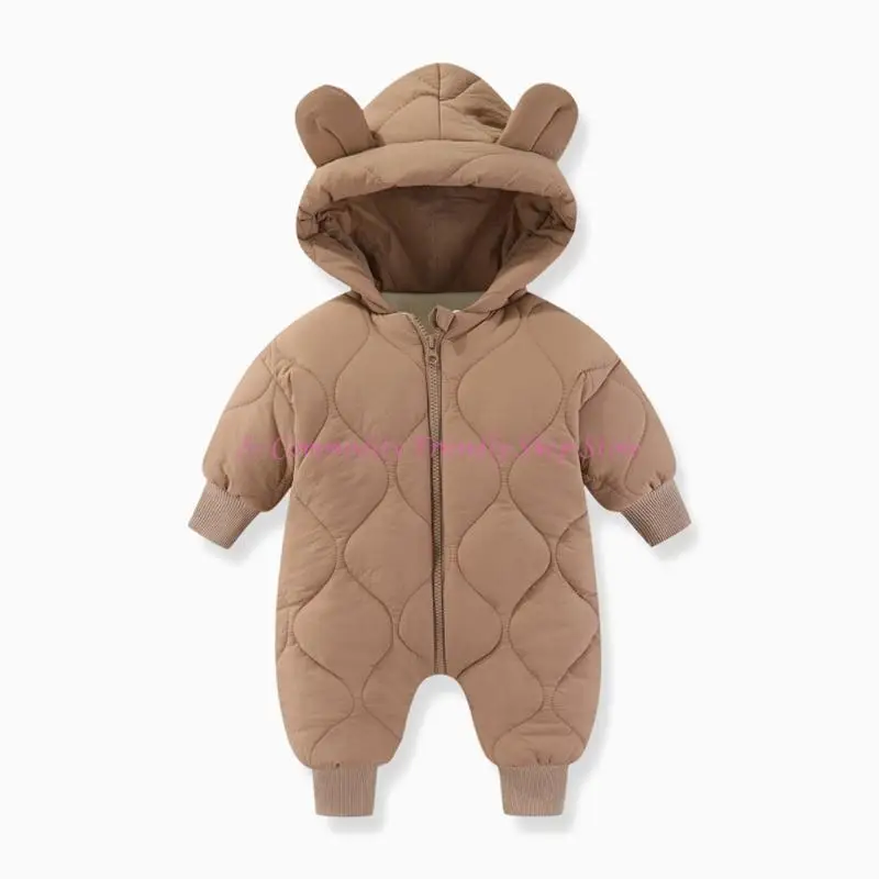 Mantenga a su bebé elegante con el mono de invierno con capucha para bebé, confeccionado en poliéster para una calidez superior.