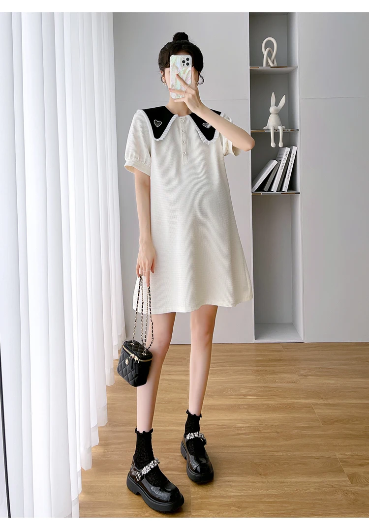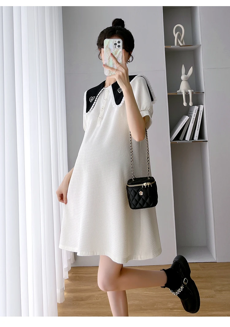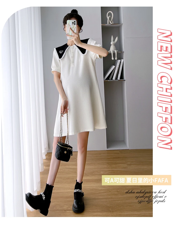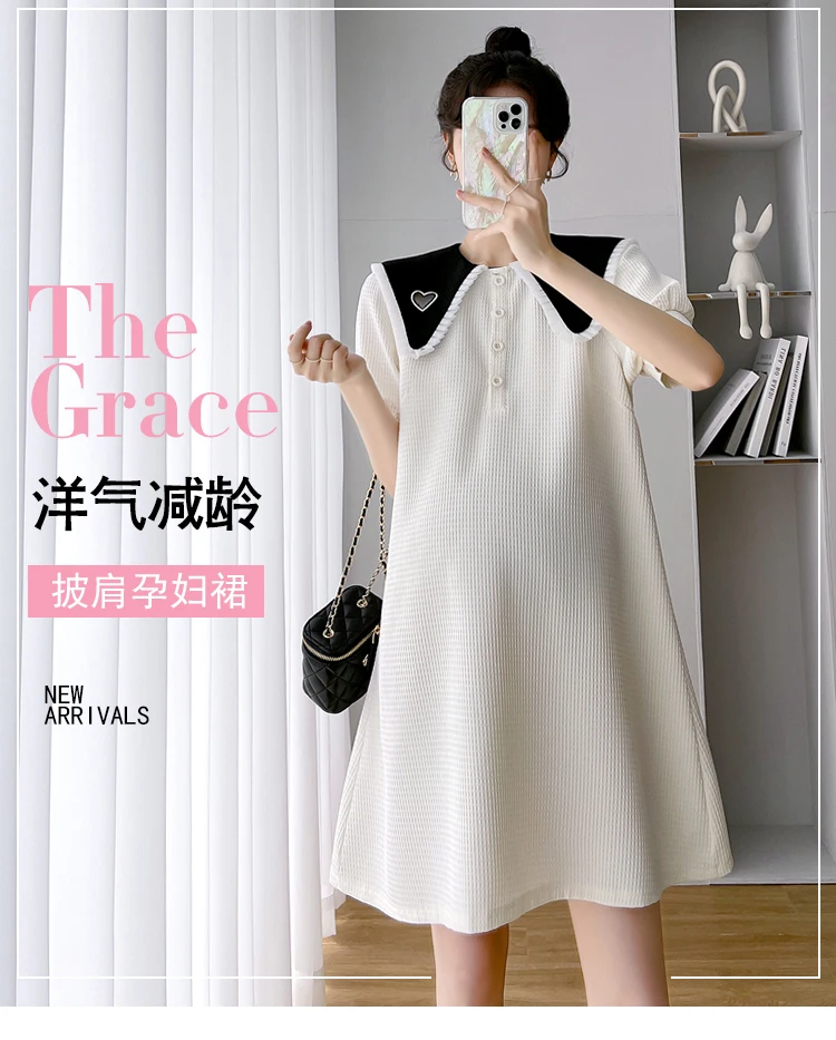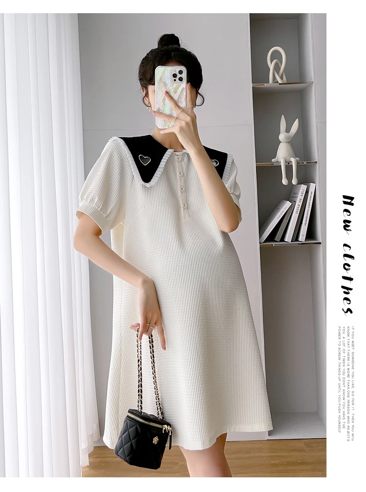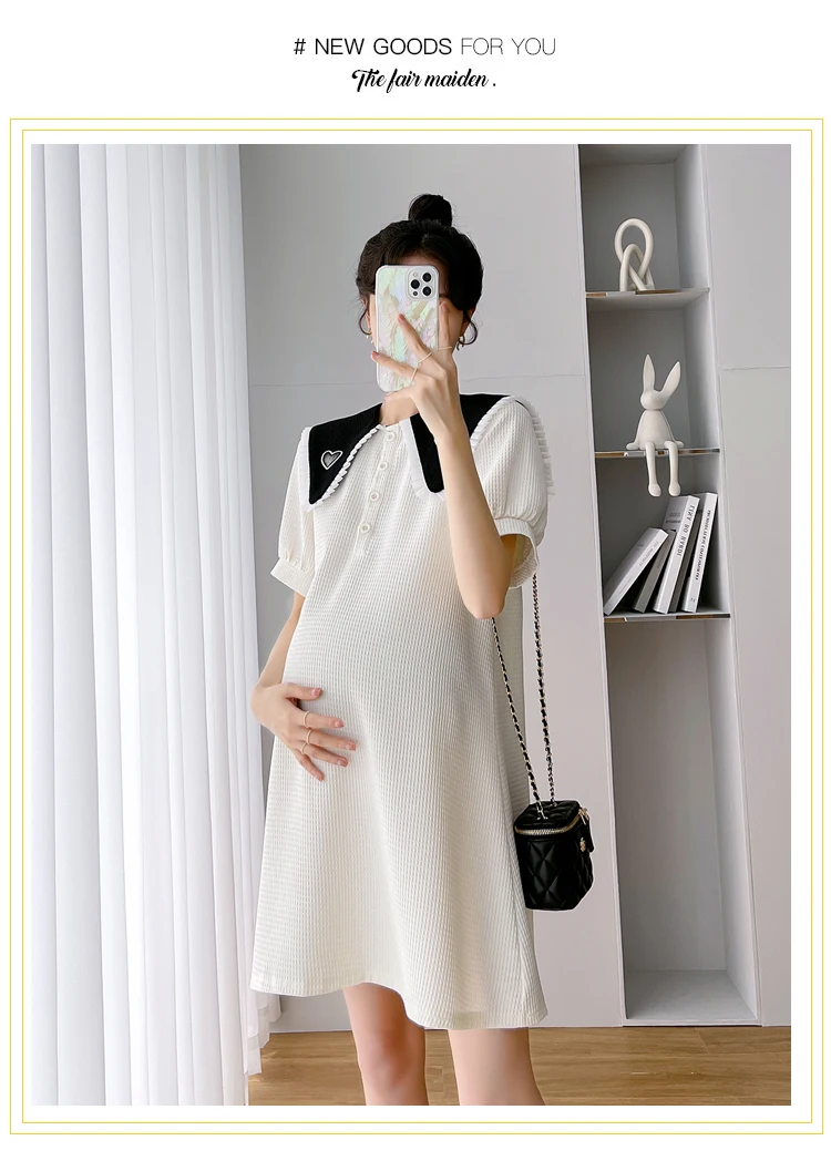 868 # Vestido de maternidad de moda coreana de verano, ropa holgada de línea A bonita y dulce para mujeres embarazadas, ropa informal para embarazo