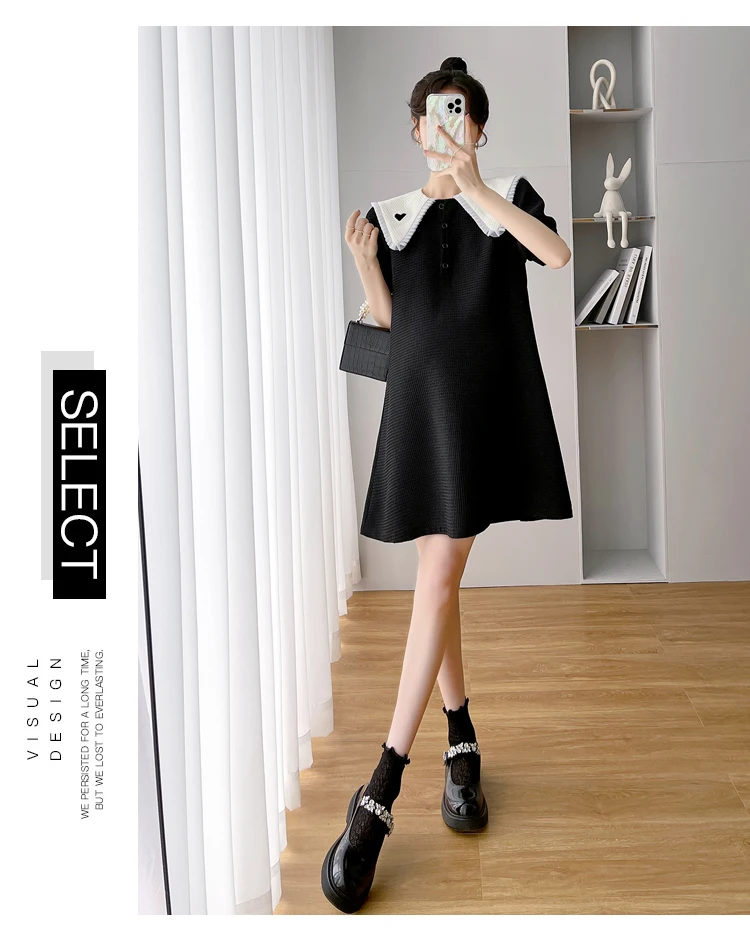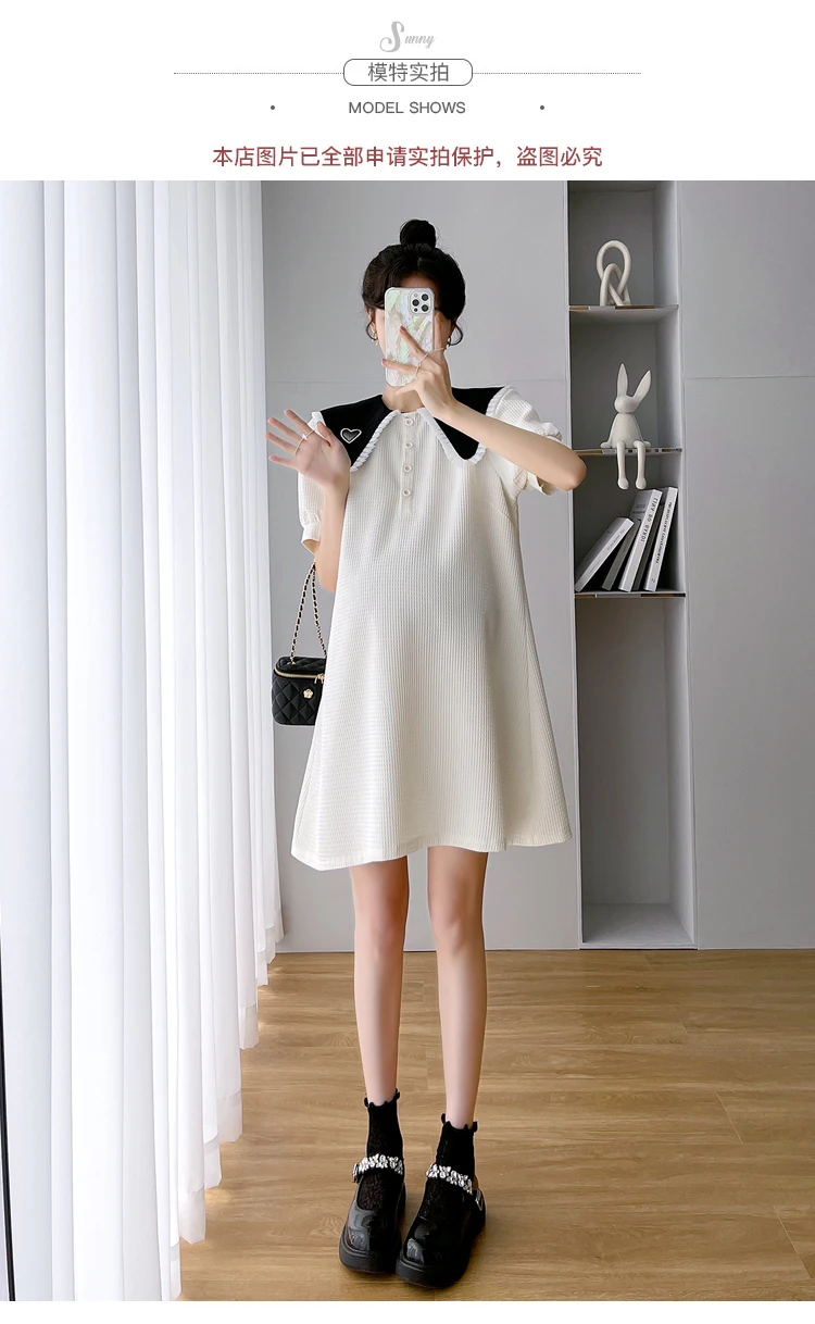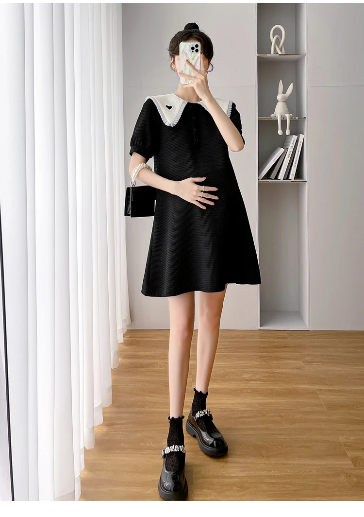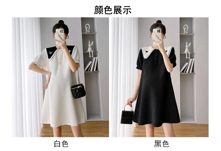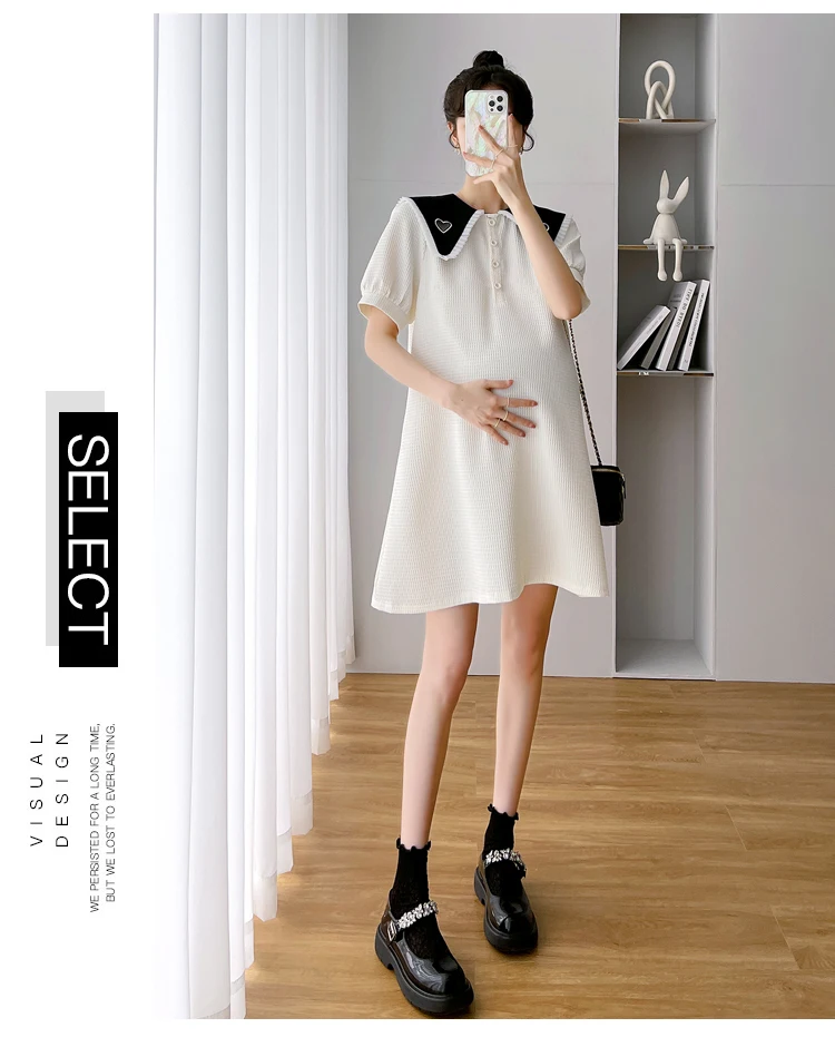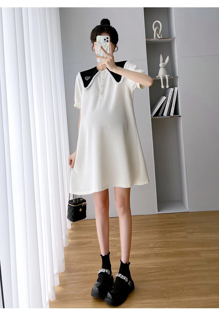 868 # Vestido de maternidad de moda coreana de verano, ropa holgada de línea A bonita y dulce para mujeres embarazadas, ropa informal para embarazo