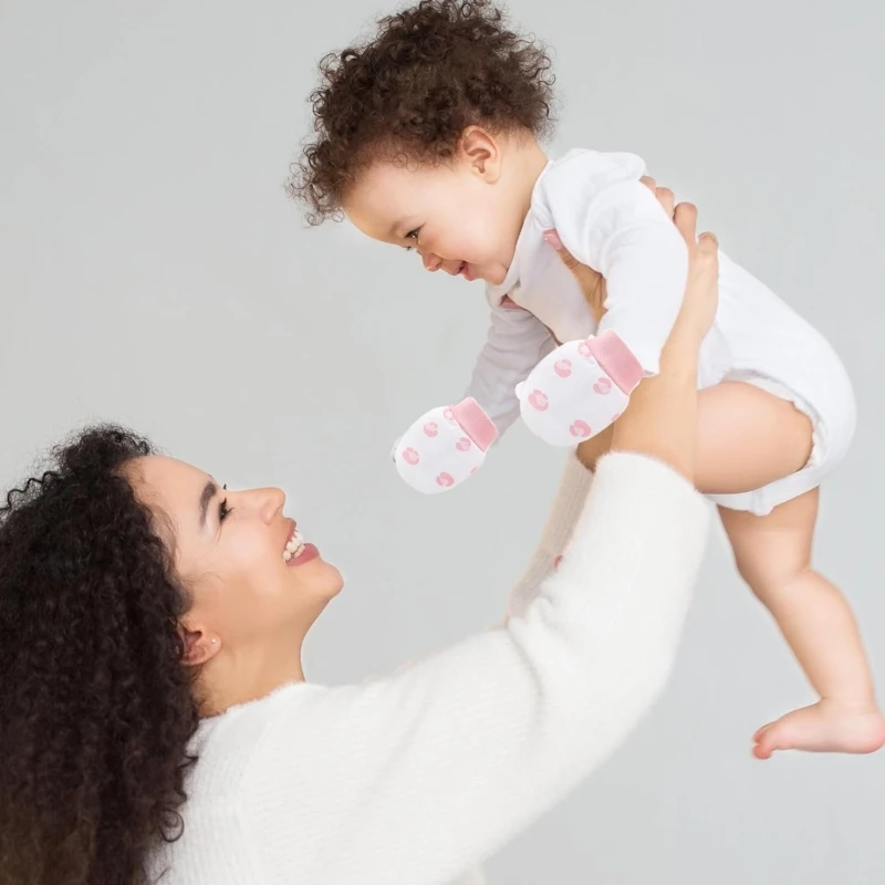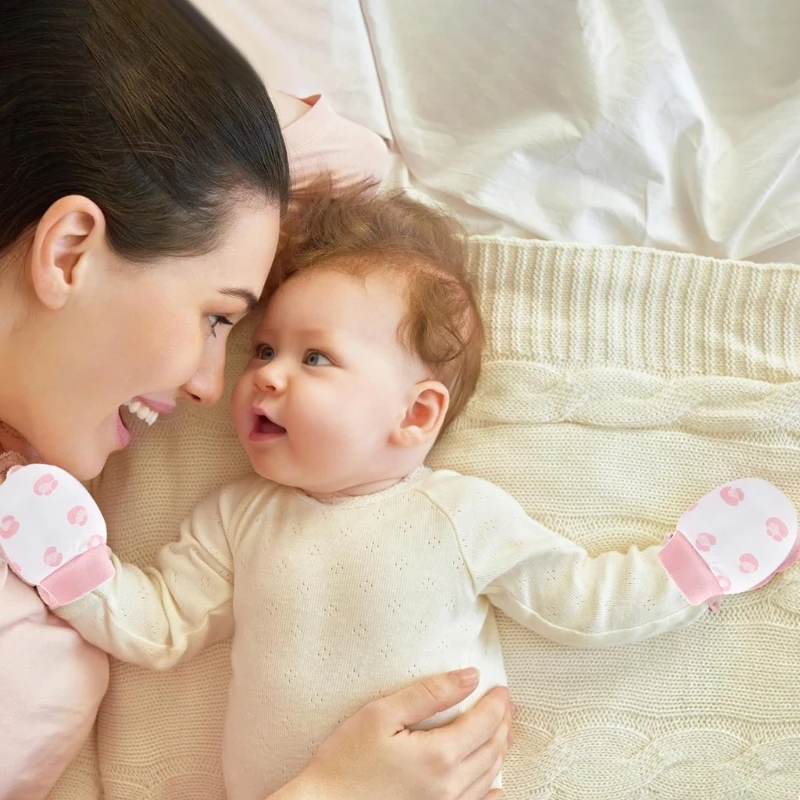 Confeccionadas con algodón suave y cómodo, estas manoplas garantizan que permanezcan seguras en manos pequeñas.