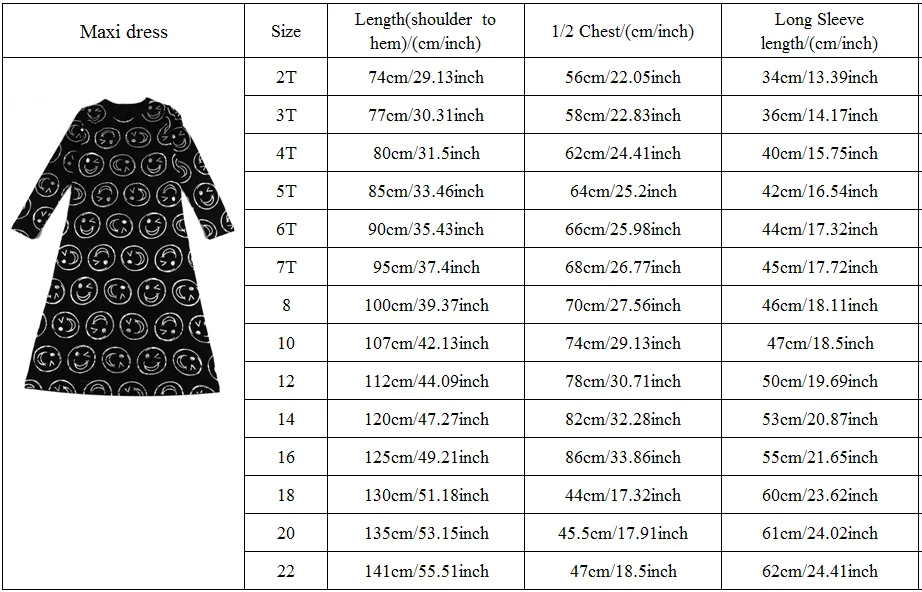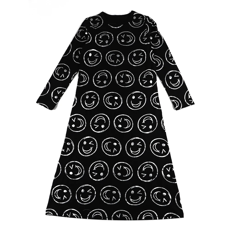 Comprar AA-Camisón de manga larga para niñas, vestido de cuello redondo con estampado de sonrisa, algodón y LICRA, ropa de verano y primavera