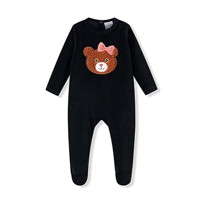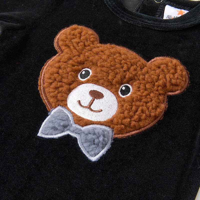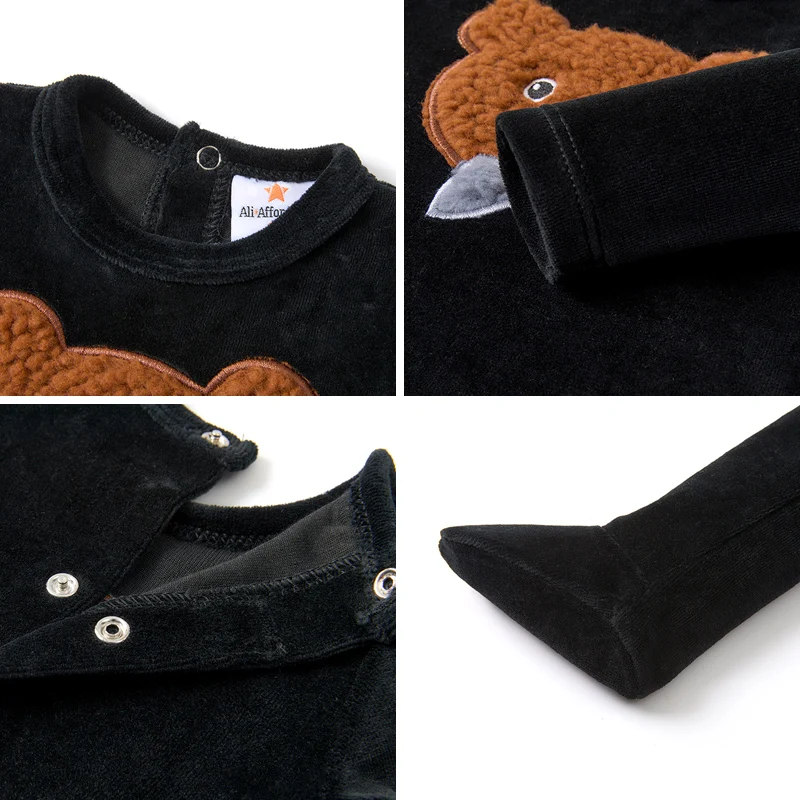 AA-sibling familia a juego pijamas de terciopelo negro para niños camisón mameluco de bebé conjunto de pijamas de oso sherpa