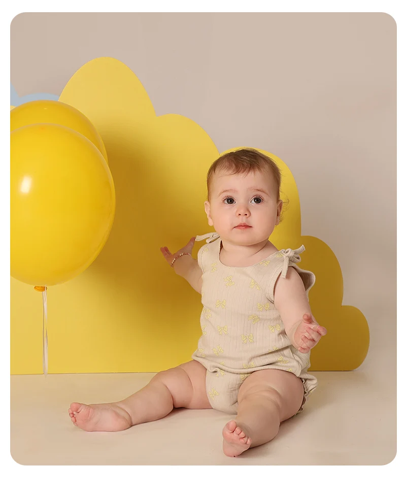 AA SS25 - Conjunto acanalado suave con estampado de lazo/velero para niñas, niños y bebés, vestido y mameluco sin mangas para bebés
