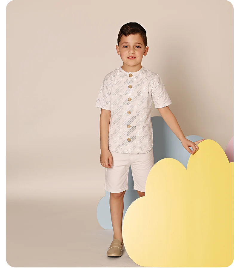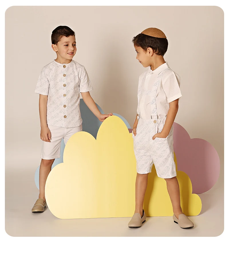 camisa muy linda. Es un material veraniego, no Shabbosdig, pero una vez puesto se ve bien (mi hijo aún lo usará para Shabbos como complemento). Queda muy bien puesto. Talla un poco grande.