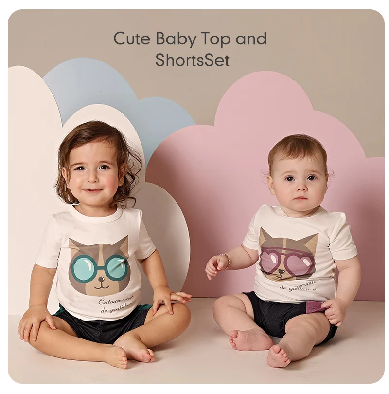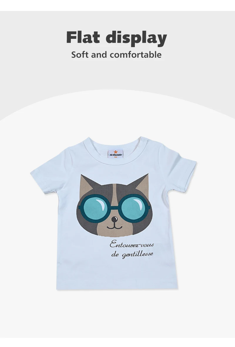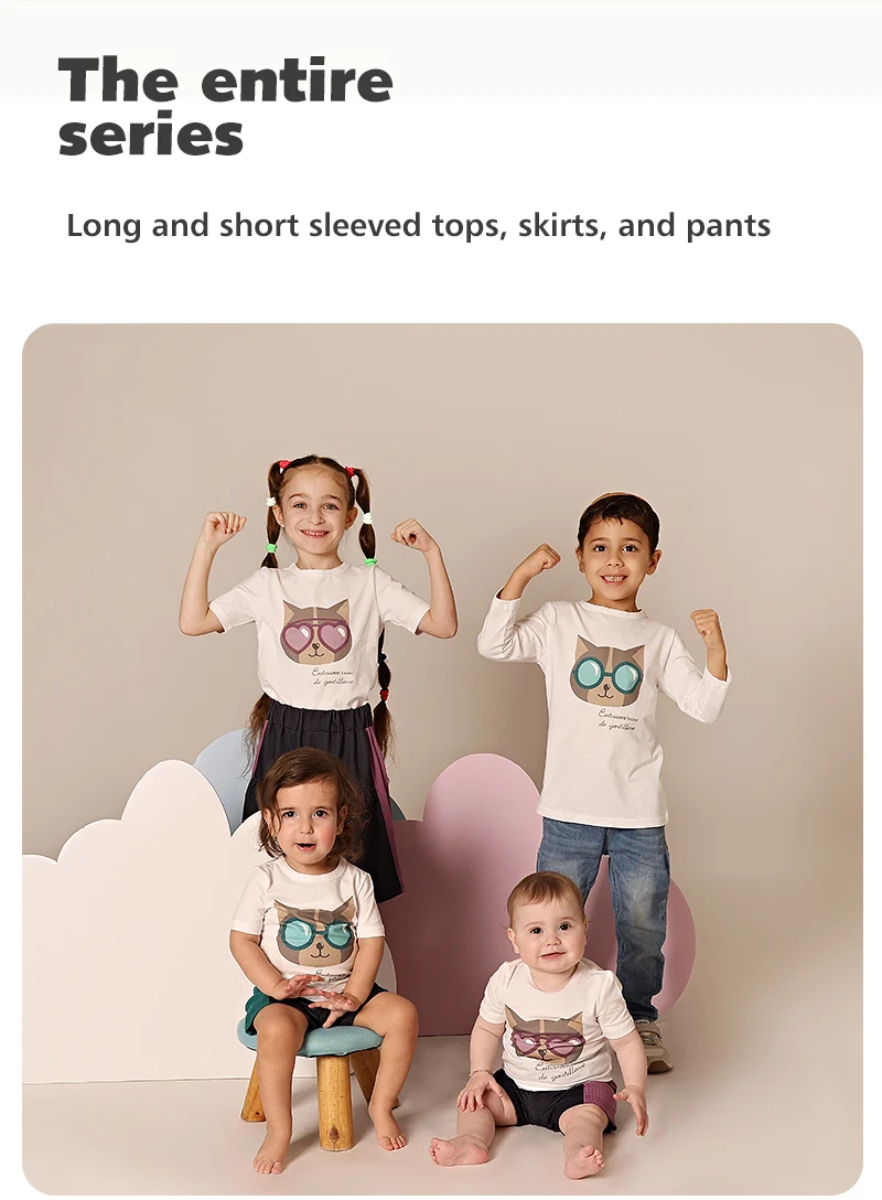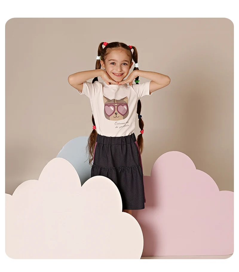 AA SS25 Ropa para niños Niño y niña Gato con gafas de sol Camiseta estampada con mezclilla y falda/polainas acanaladas Ropa casual para niños