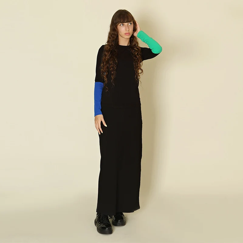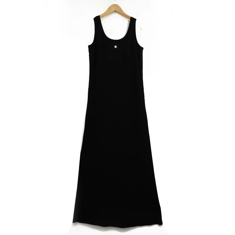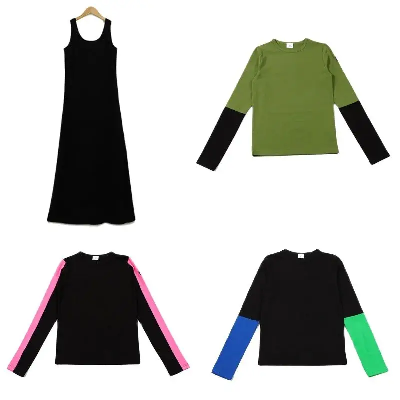 AA-Mujeres vestido de invierno sin mangas camiseta para mujer negro acanalado Jersey color bloque mangas Top camisa gran cuello redondo acanalado vestido