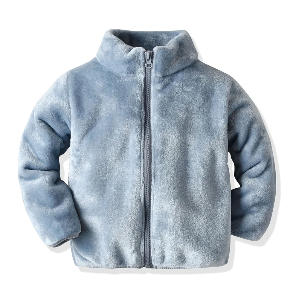 Abrigo de franela de lana Coral para niños y niñas de 3 a 8 años, abrigo cálido con cremallera, abrigo de felpa para niños, ropa de invierno para niñas