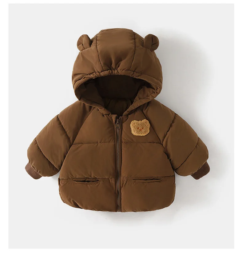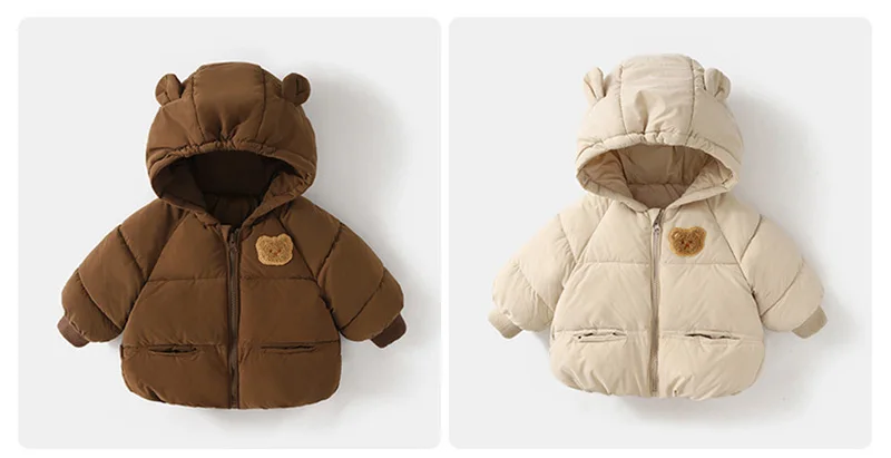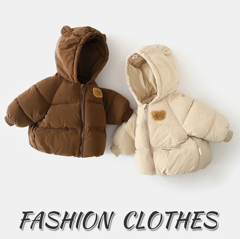 Abrigo de invierno de oso de dibujos animados para bebé, Chaqueta de algodón gruesa para niños y niñas, ropa con capucha para niños, prendas de vestir exteriores para nieve, disfraz coreano 1-6T