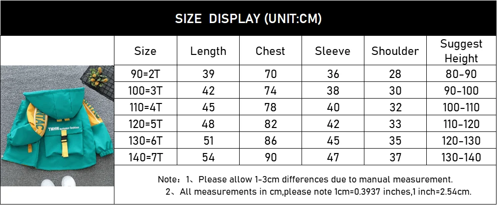 Nota: 1. Hay una diferencia de 2-3cm según la medición manual.(1 pulgada=2,54 cm)