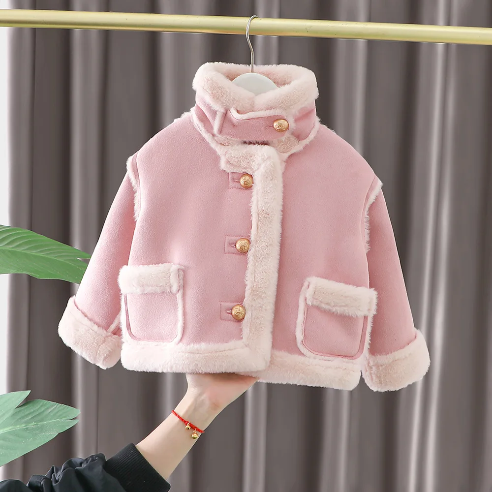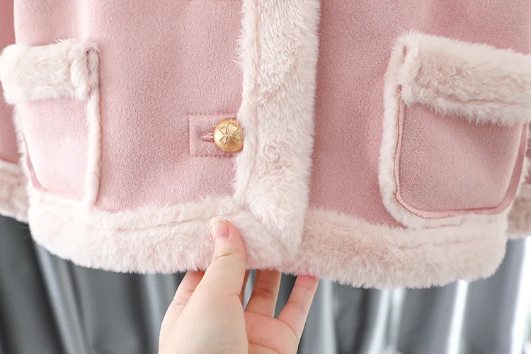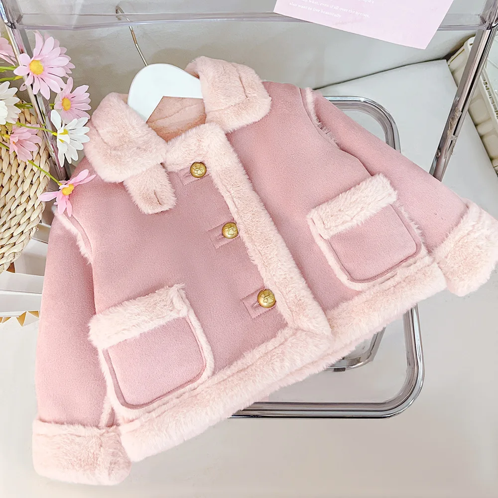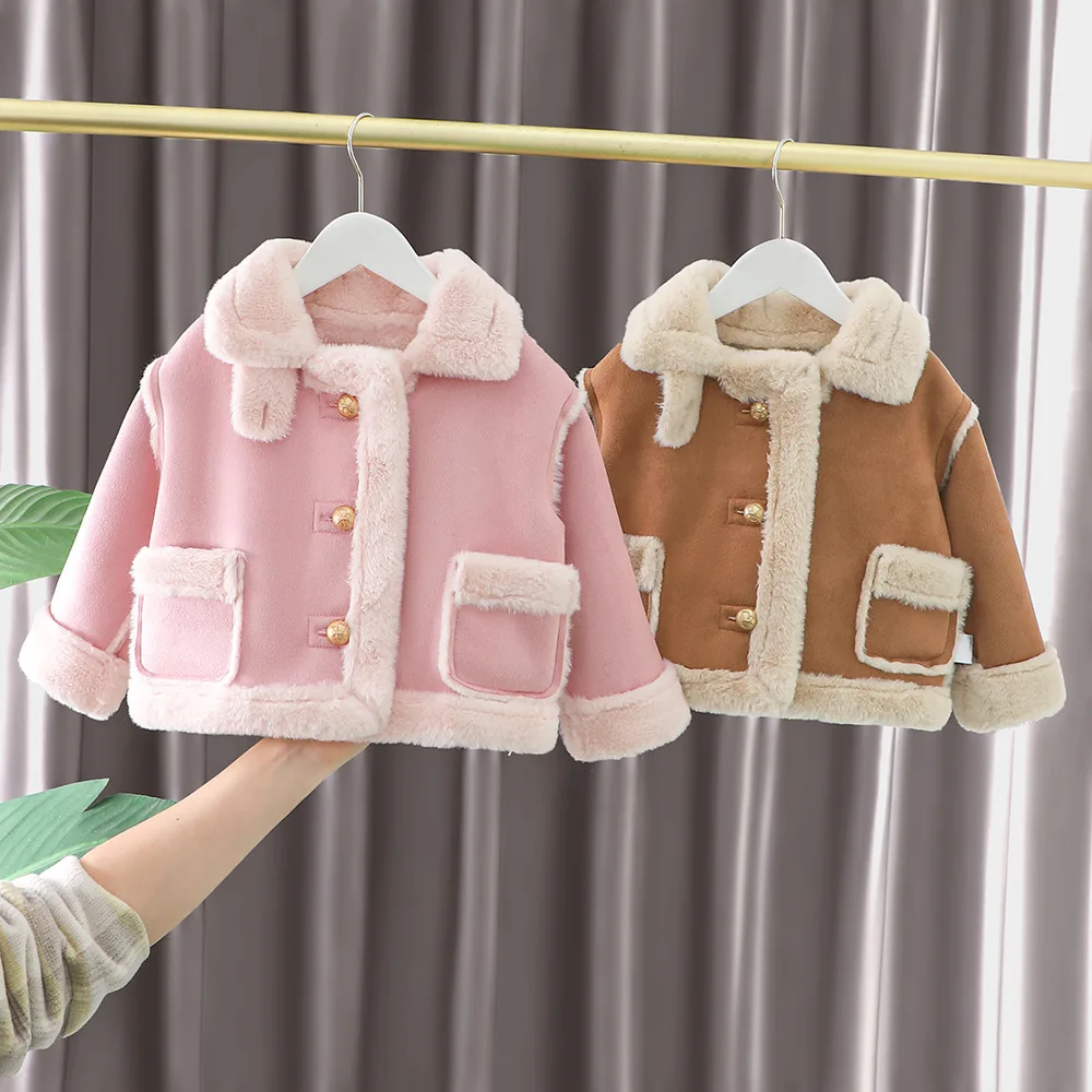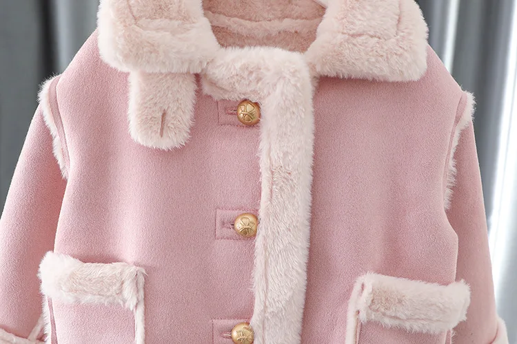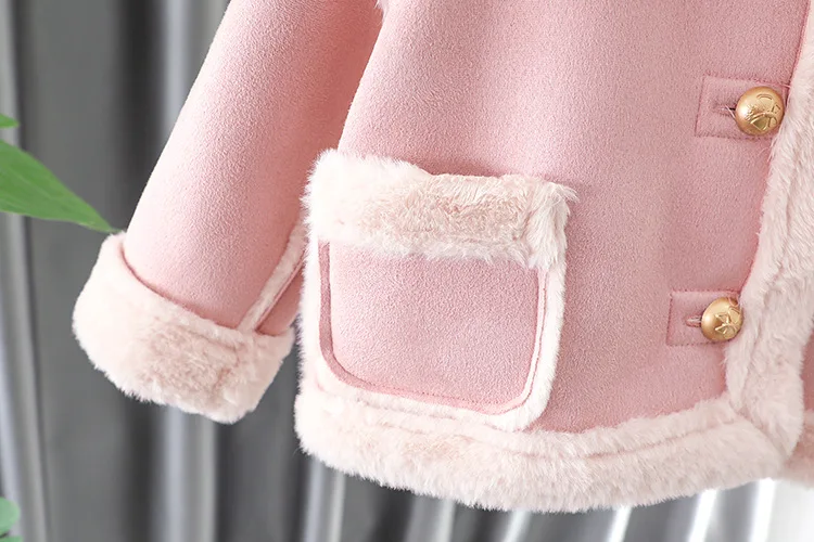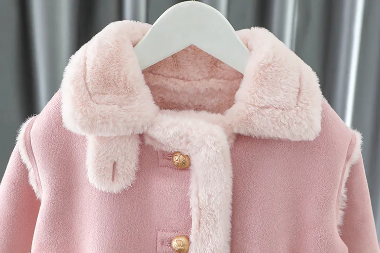 Comprar Abrigo de otoño e invierno para niños, ropa para niñas, moda coreana, chaquetas de gamuza de lana gruesa y cálida rosa, ropa para bebés BC256