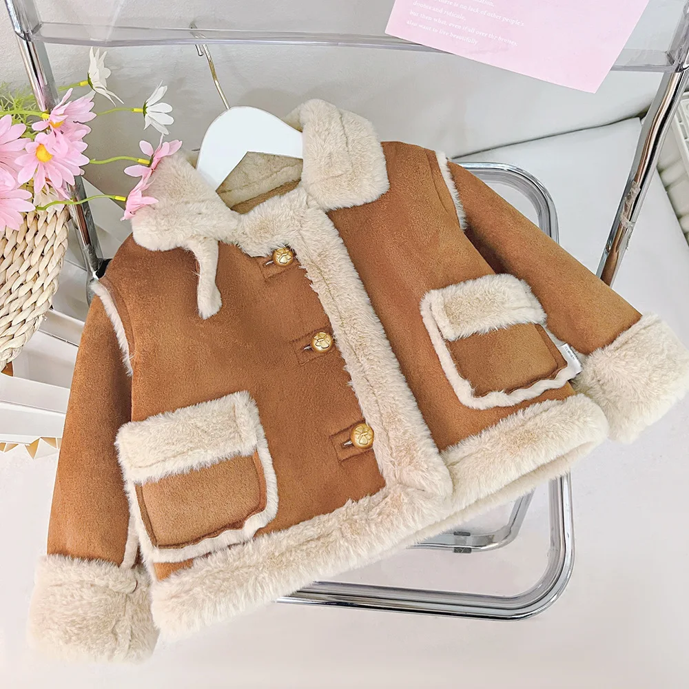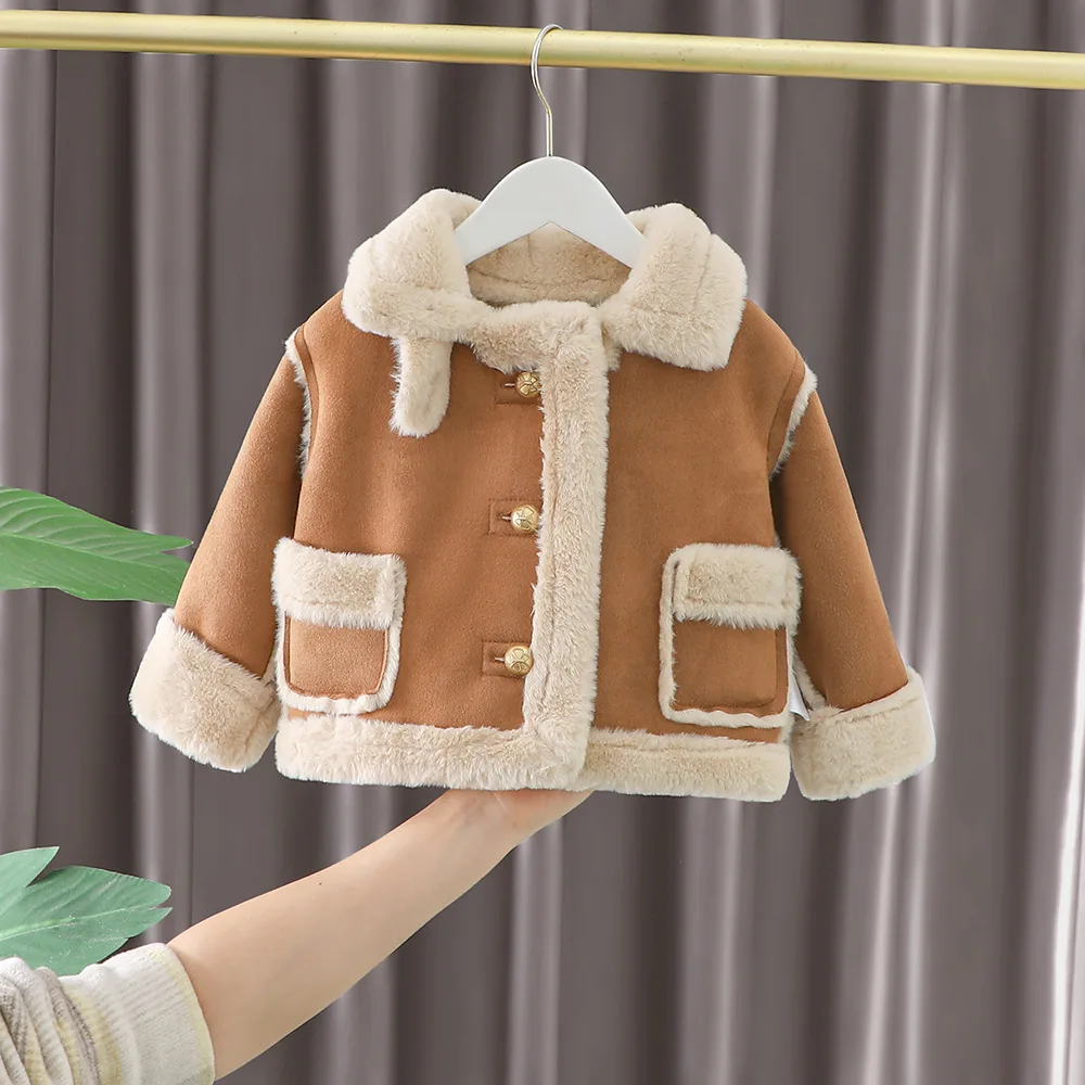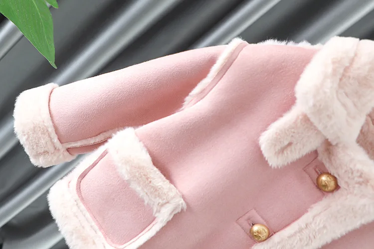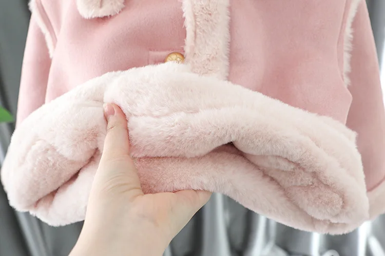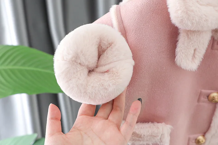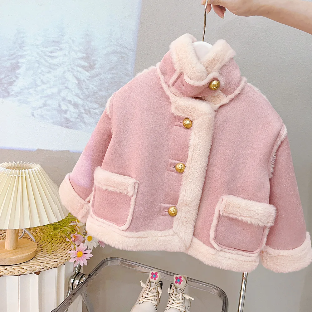 Comprar Abrigo de otoño e invierno para niños, ropa para niñas, moda coreana, chaquetas de gamuza de lana gruesa y cálida rosa, ropa para bebés BC256