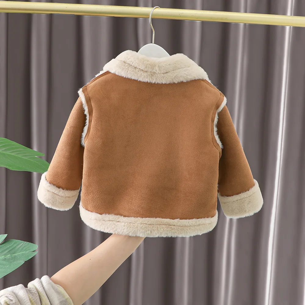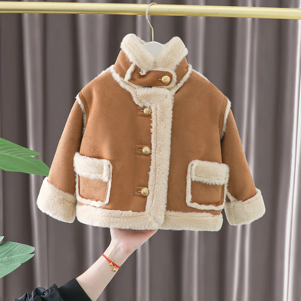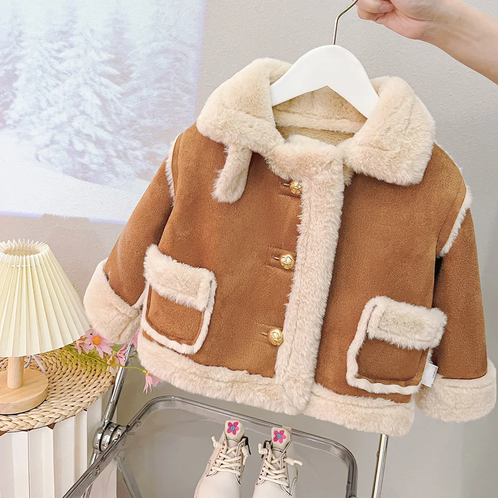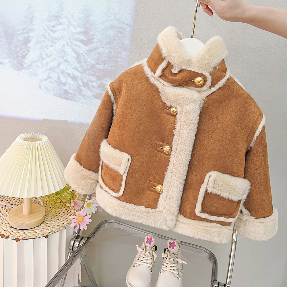 Comprar Abrigo de otoño e invierno para niños, ropa para niñas, moda coreana, chaquetas de gamuza de lana gruesa y cálida rosa, ropa para bebés BC256