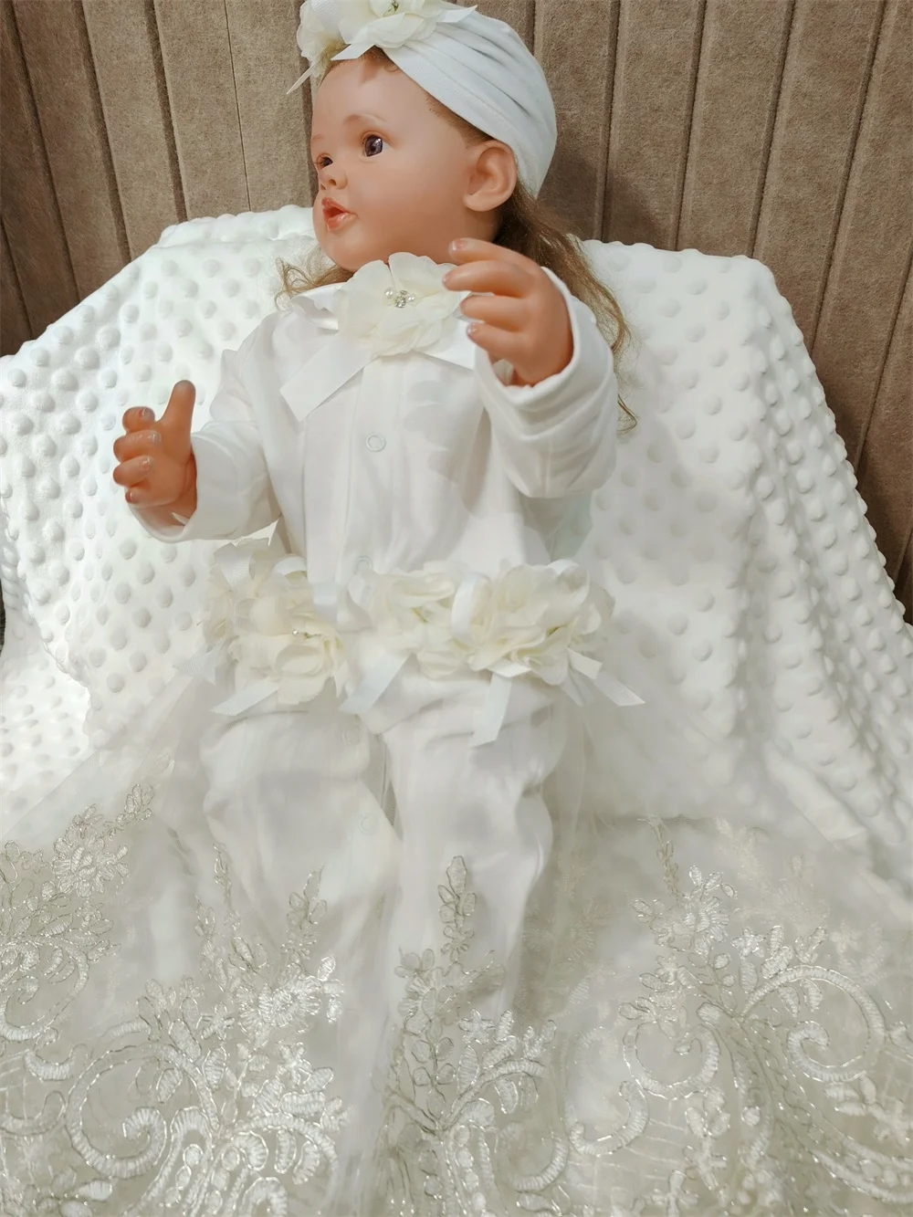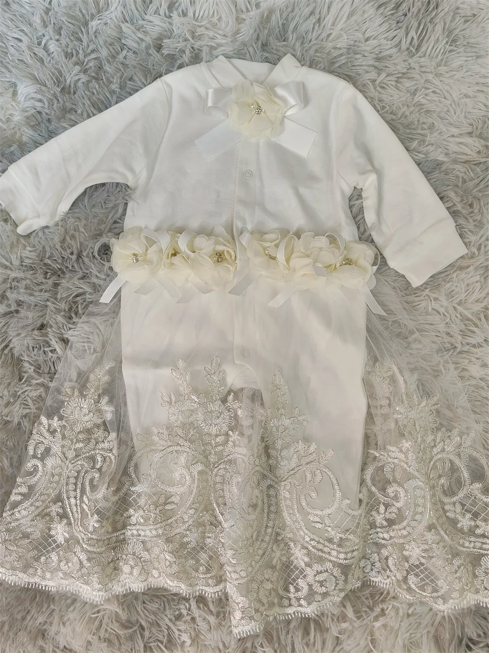 1Xromper con vestido de encaje bordado dorado;