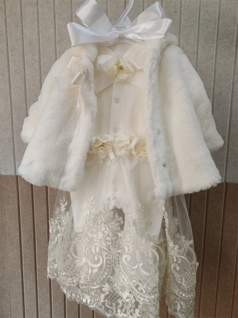 1 abrigo de piel blanco;