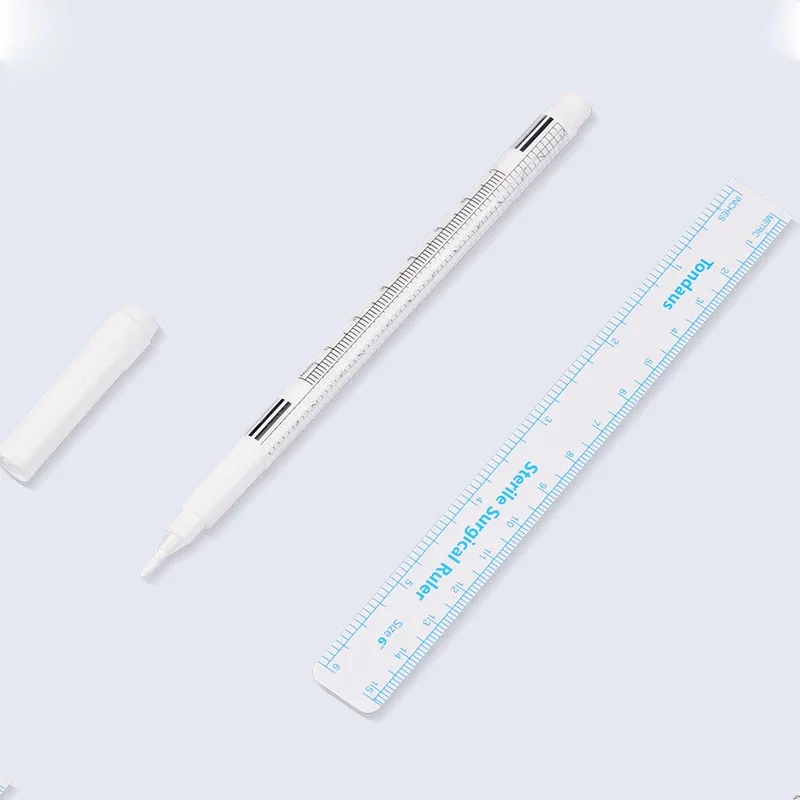 Rotulador de piel para tatuaje de cejas quirúrgicas blancas, rotulador de tatuaje, accesorios de herramientas con regla de medición, Microblading
