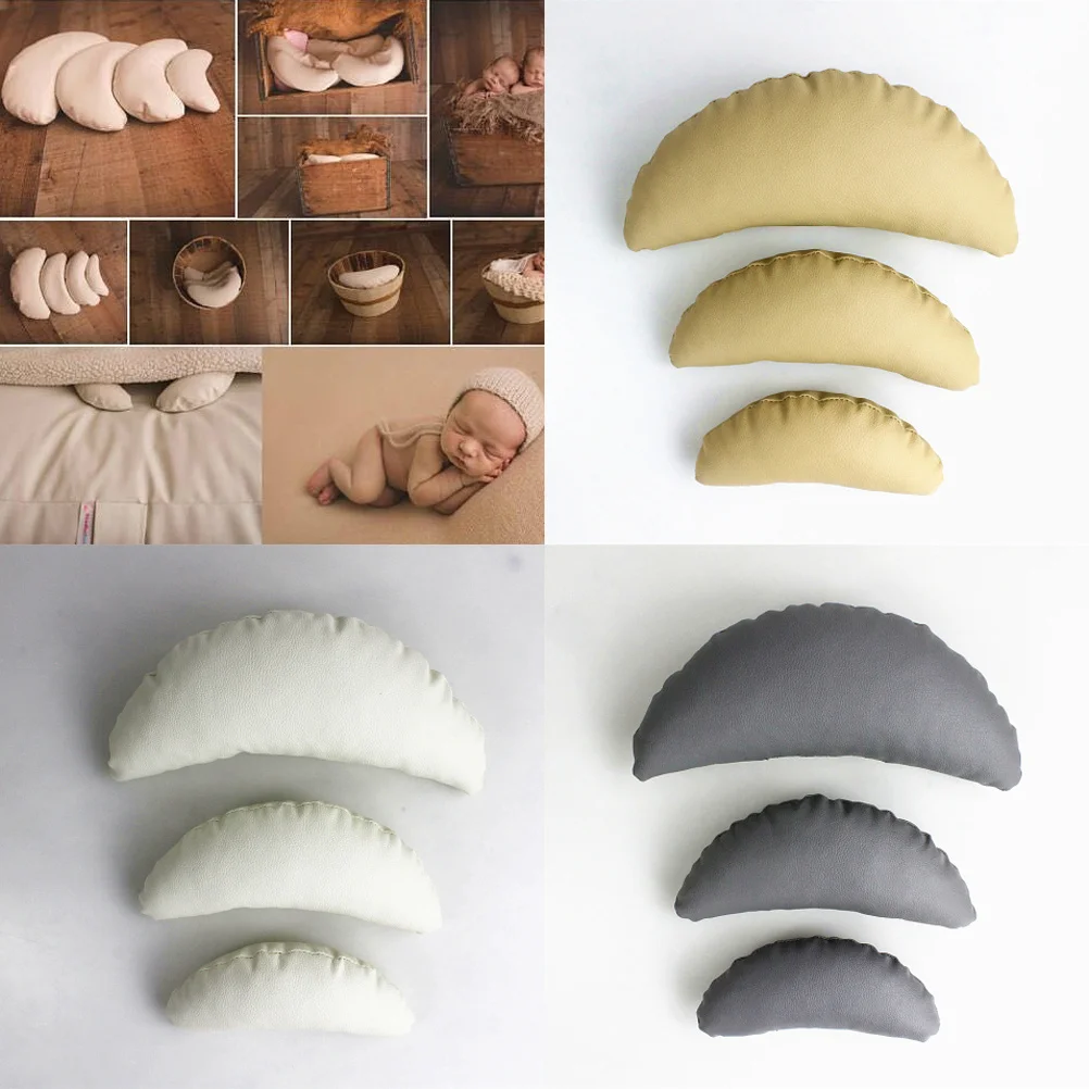 Almohada de luna para fotografía de bebés recién nacidos, accesorio de frijoles, almohada ligera y transpirable contorneada para fotos de bebés, color blanco, 3 uds.