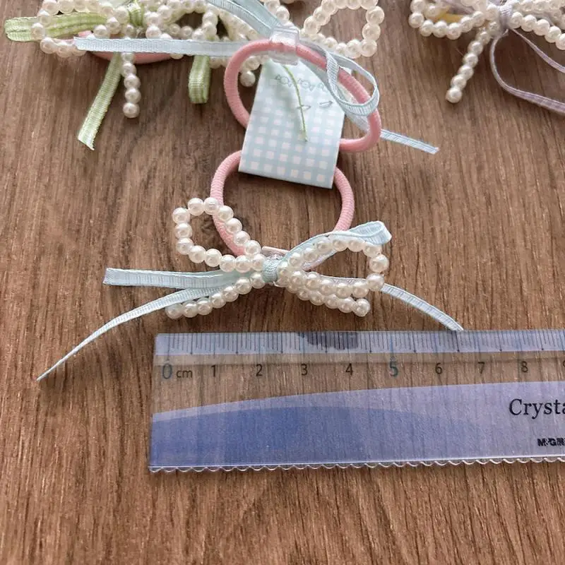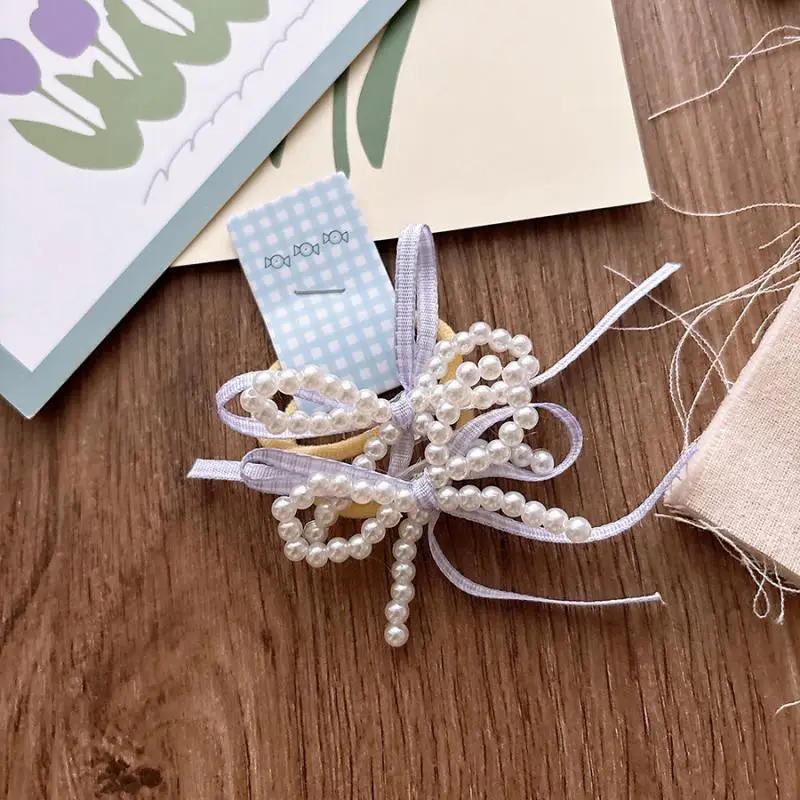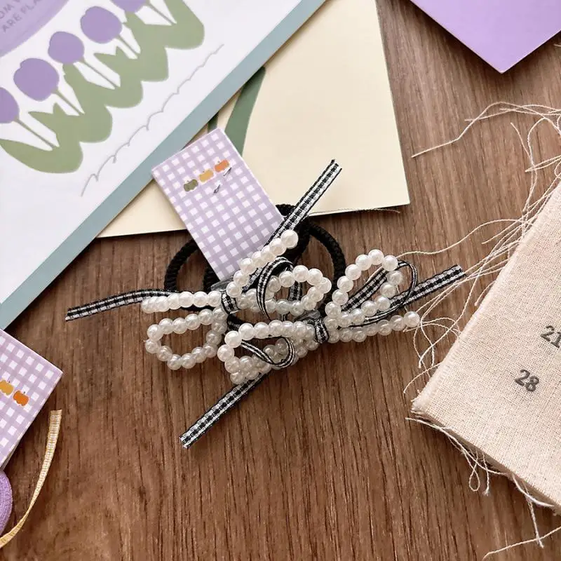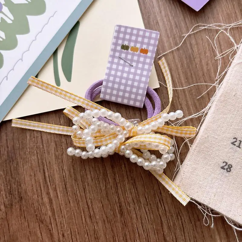 Accesorios para el cabello para niñas, Color caramelo, perlas de imitación dulces, banda de goma elástica, lazo a cuadros, cuerda para el cabello, herramienta de peinado para cola de caballo