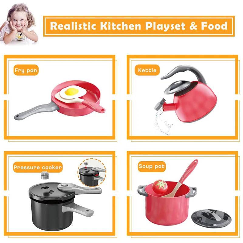 Comprar Accesorios de cocina para niños, juego de simulación de comida falsa, ollas y sartenes, regalos para niñas y niños