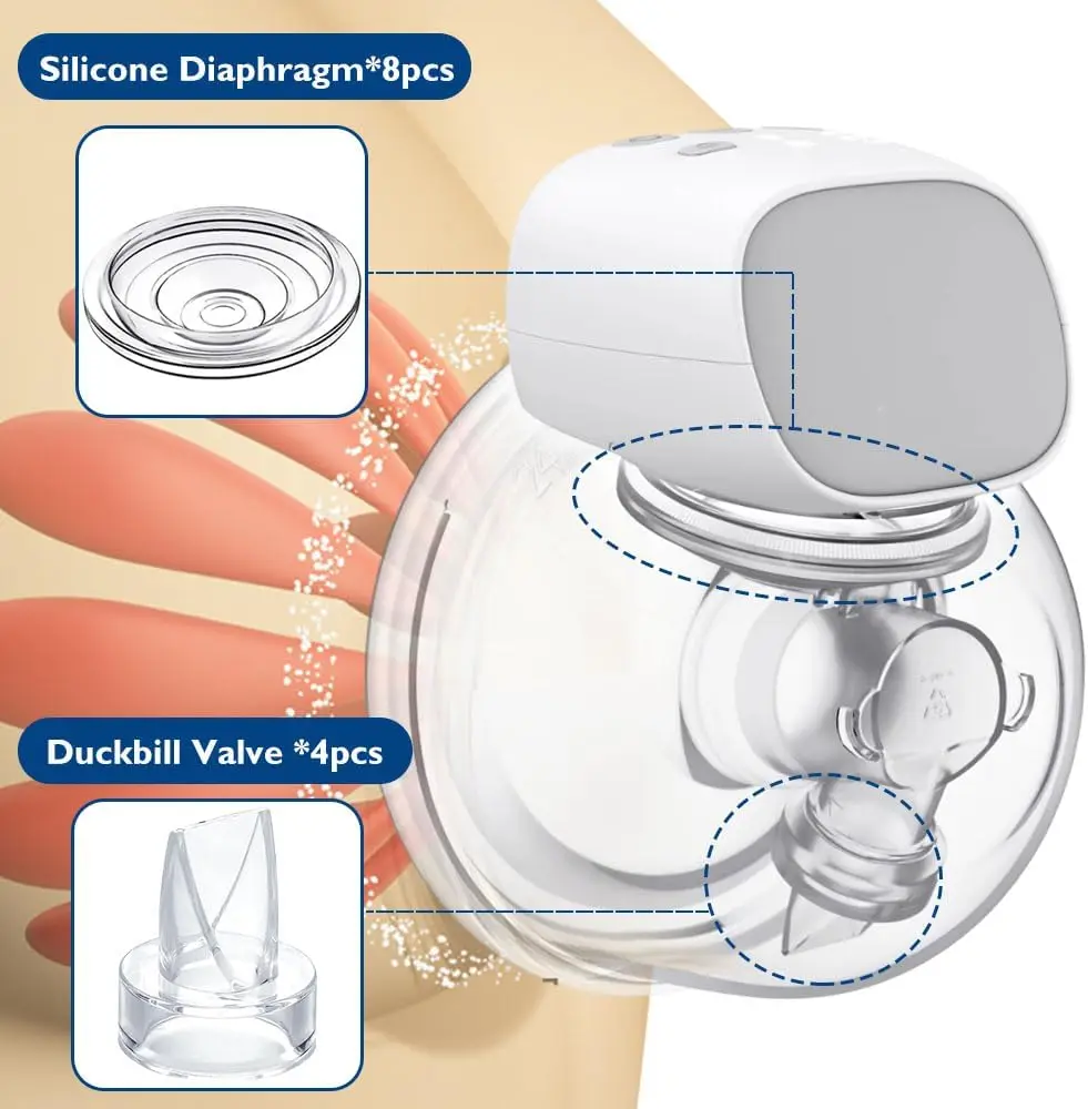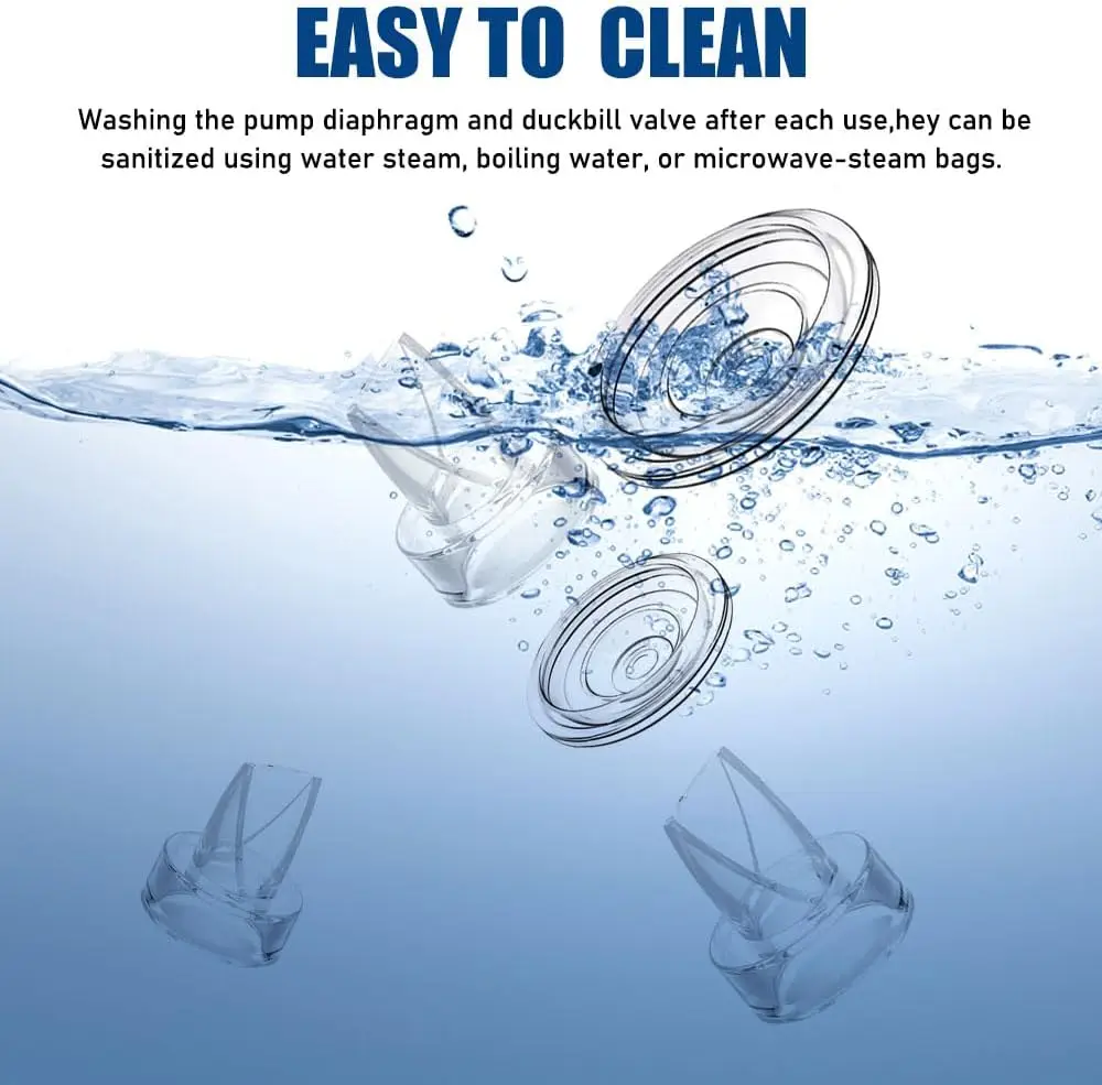 【Fácil de limpiar】: Al lavar el diafragma de la bomba y la válvula de pico de pato después de cada uso, se pueden desinfectar con vapor de agua, agua hirviendo o bolsas de vapor para microondas, lo que garantiza un accesorio de bombeo higiénico y duradero.Recomendamos reemplazarlos cada 2 meses para mantener una funcionalidad óptima.