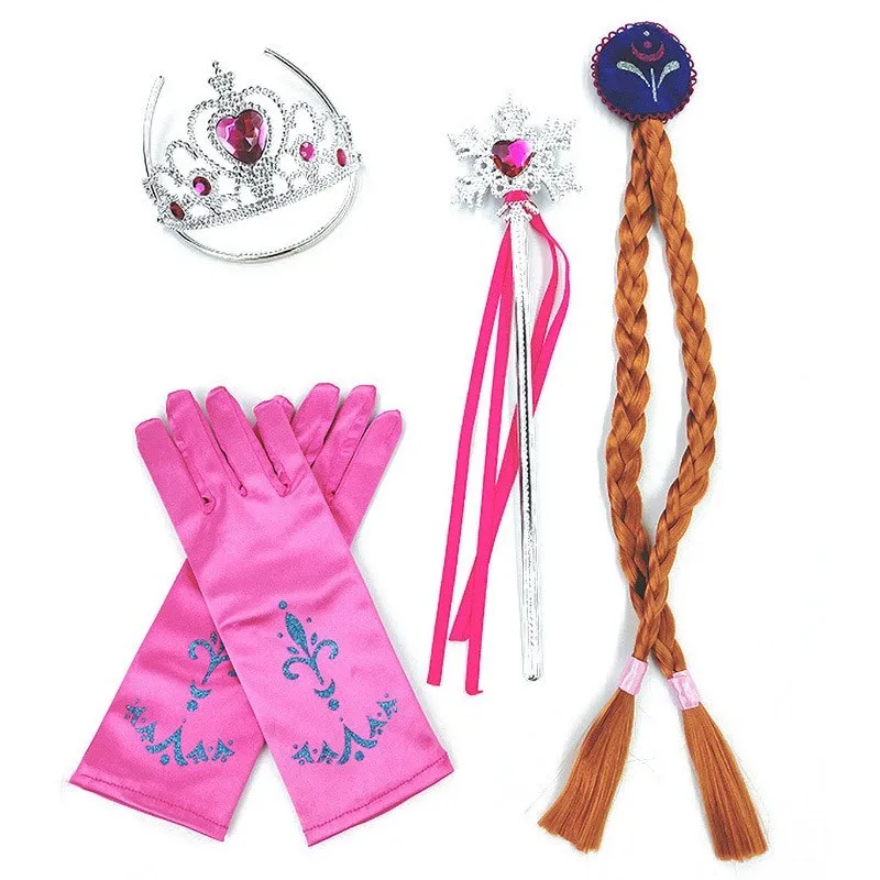 Comprar Accesorios de fiesta de princesa para niños, Kit de disfraz de Cosplay para niña, guantes de varita de corona para niños, pendientes, anillo, collar, suministro multicolor