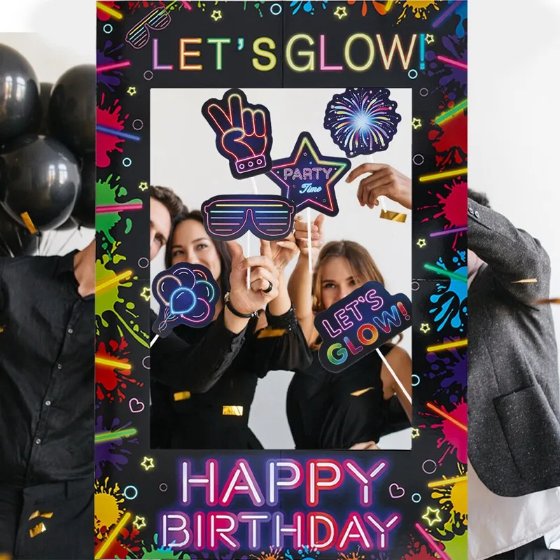 Comprar Accesorios fluorescentes para marcos de fotos de fiesta, accesorios de tiro que brillan en la oscuridad, decoración para fiesta de feliz cumpleaños, suministros de recuerdo para niños y adultos