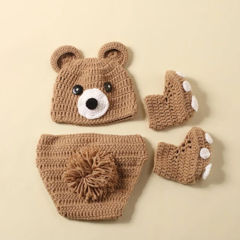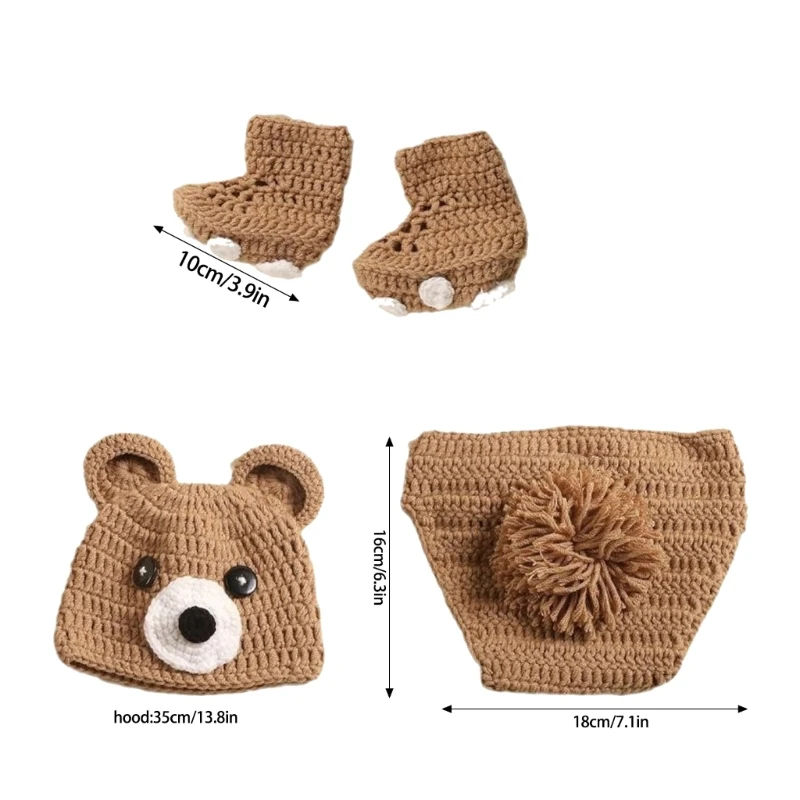1 Juego de traje de fotografía de recién nacidos de oso de dibujos animados
