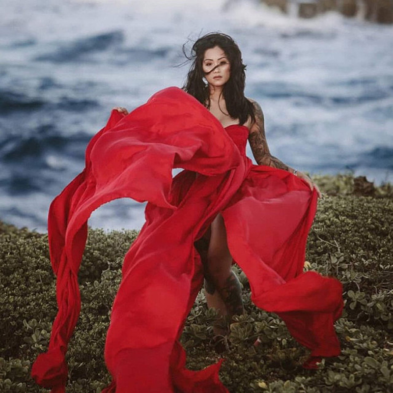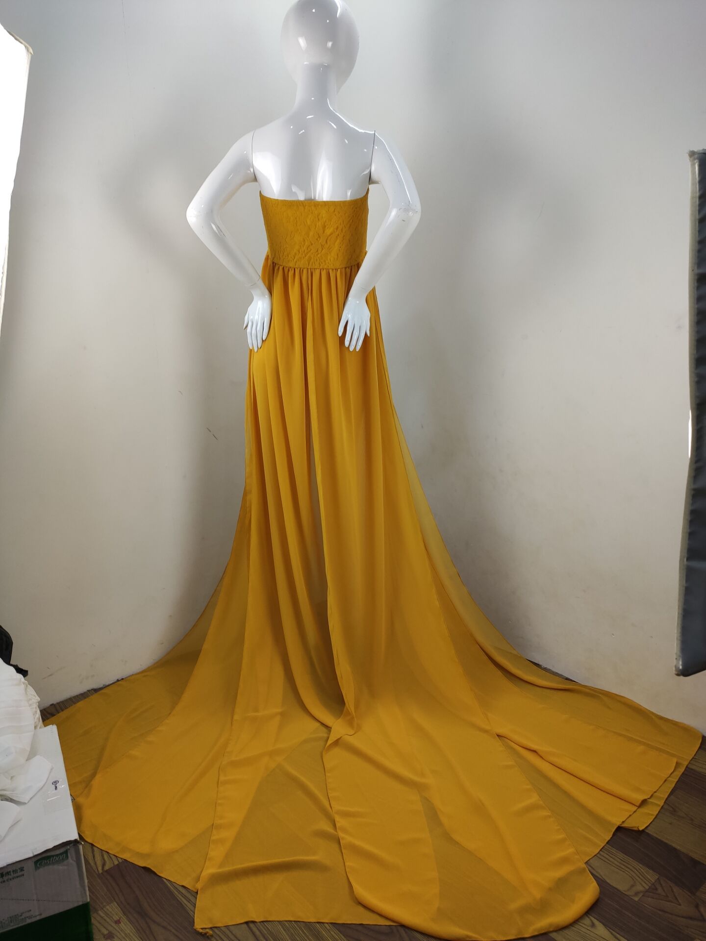 Tela: gasa y encaje Tamaño: (cm) S Busto: 62-90 Longitud: 217 M Busto: 64-94 Longitud: 217L Busto: 66-98 Longitud: 217XL Busto: 68-102 Longitud: 217