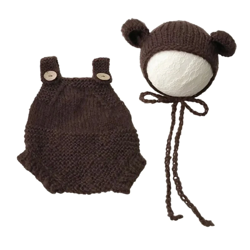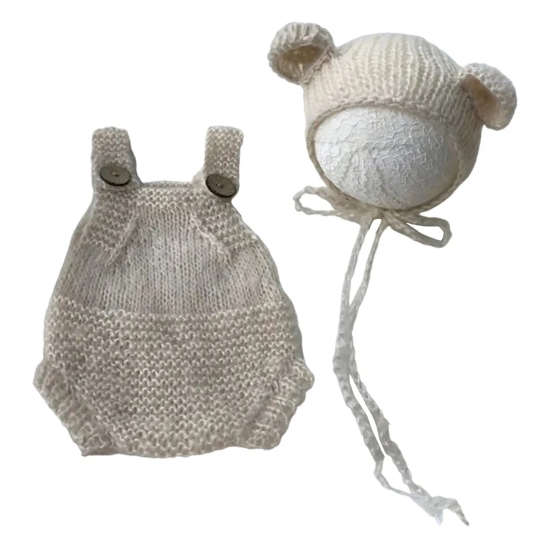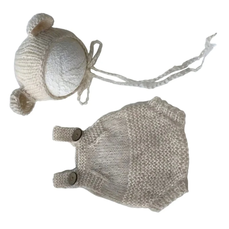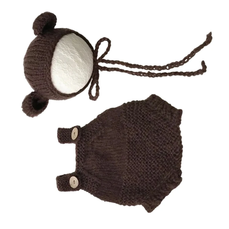 Graba el gran momento de su bebé con comodidad y estilo con nuestro conjunto de punto de oso de dibujos animados, perfecto para crear fotografías memorables.