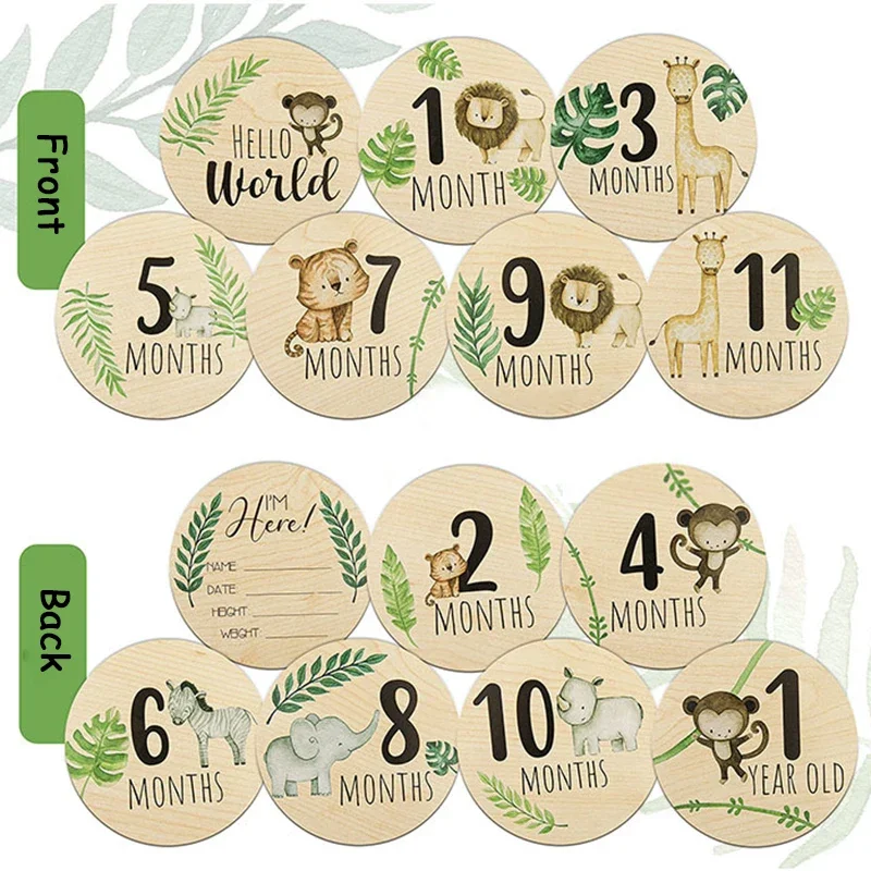 Accesorios de fotografía recién nacido, tarjeta de hito para bebé, estampado Animal, grabación mensual de madera, tarjetas conmemorativas, regalos para Baby Shower, 7 Uds.