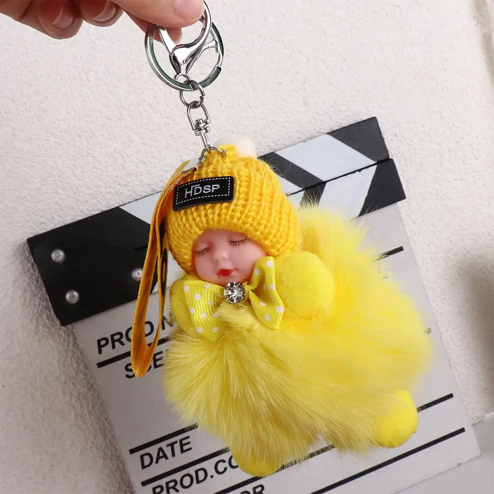 Comprar Accesorios llavero de coches mochila bola colgante joyería regalo muñeca bebé durmiente llavero con pompón llavero de felpa muñeco de peluche esponjoso