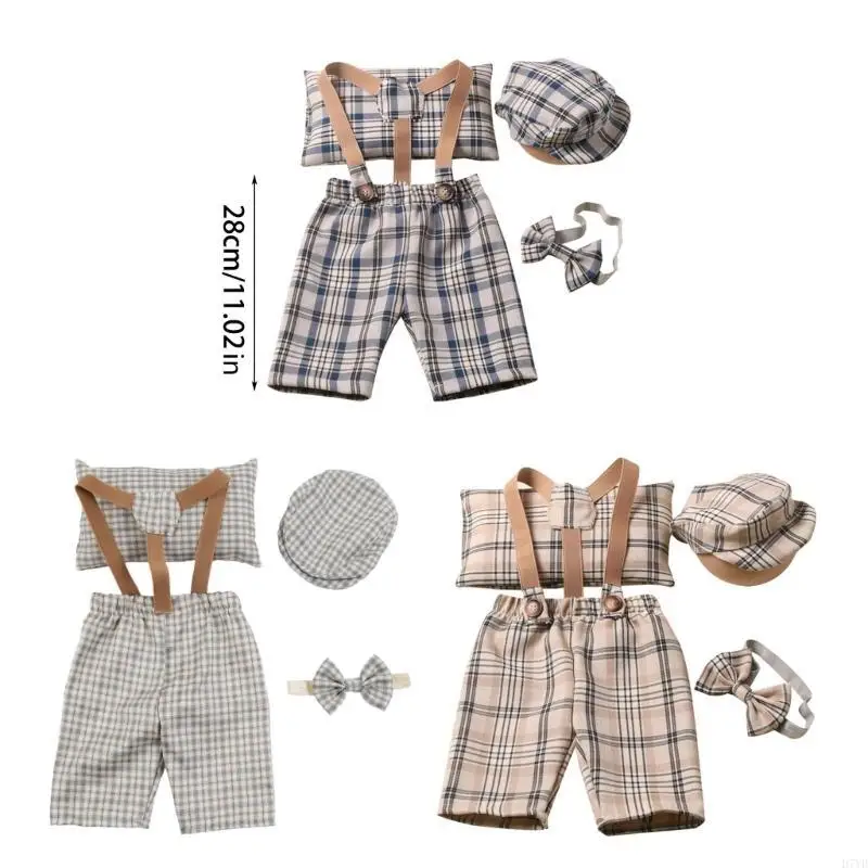 El paquete incluye:1 Juego de accesorios de fotografía de bebé de uniforme con tirantes de los años 90 (1 pantalón, 1 sombrero, 1 almohada, 1 pajarita)