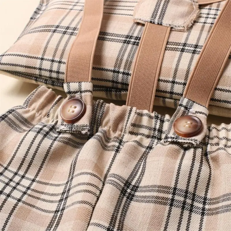 Material seleccionado: el conjunto de uniforme de pantalones con tirantes vintage para bebé utiliza material de poliéster calificado, no se desprende ni se decolora fácilmente, es resistente a las bolitas, es antiestático y tiene buen rendimiento.