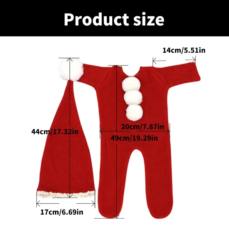 Especificaciones:Dimensión del producto: Aprox.Longitud del mameluco 45 cm/19,29 pulgadas, longitud de la manga 14 cm/5,516 pulgadas, longitud del sombrero 44 cm/17,32 pulgadas