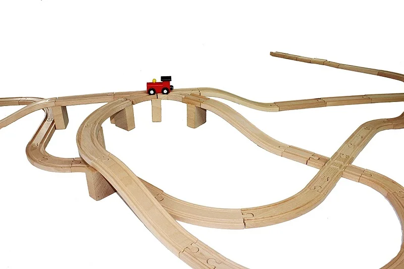 Variedad de vías cuidadosamente seleccionada: lista para expandir y construir su ferrocarril de madera.