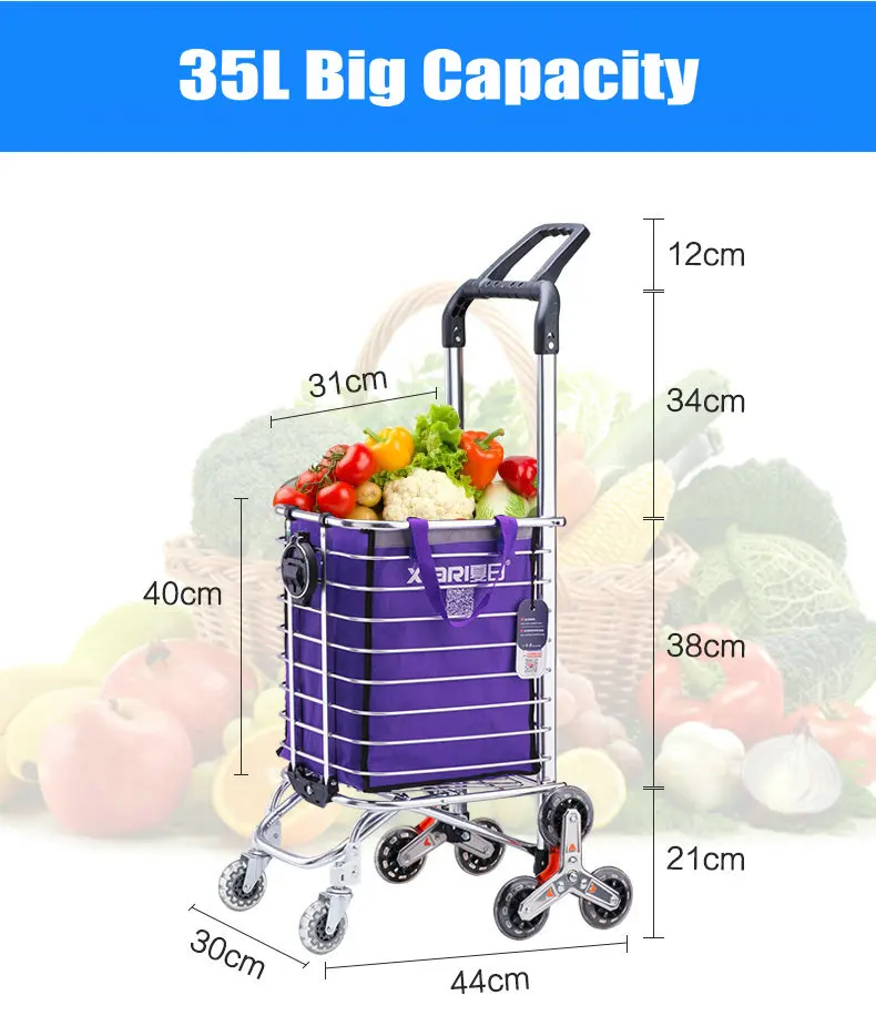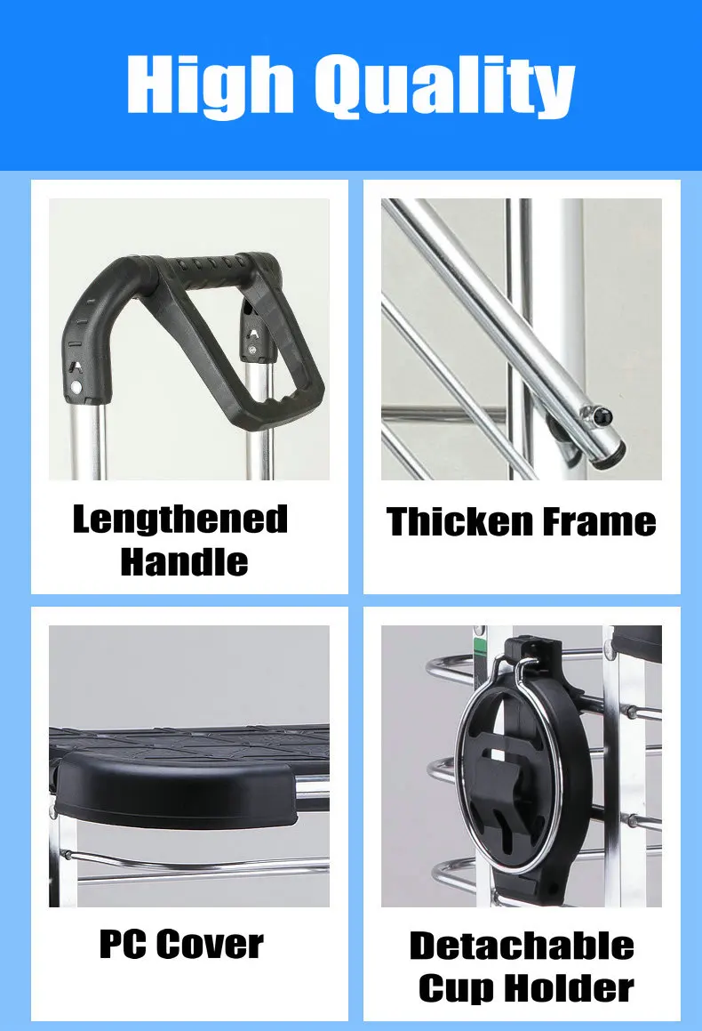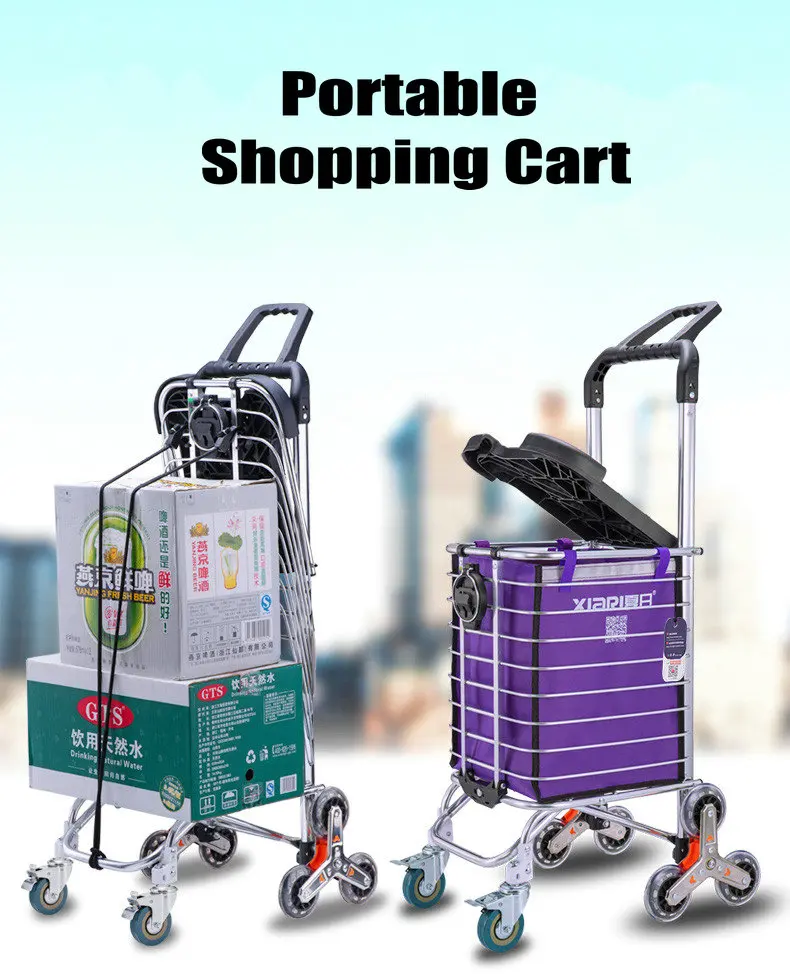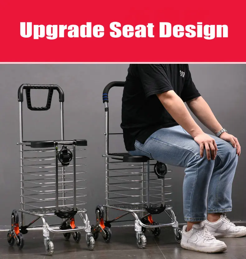 Mejora el carrito de compras doméstico portátil con funda (pueden sentarse) y portavasos,