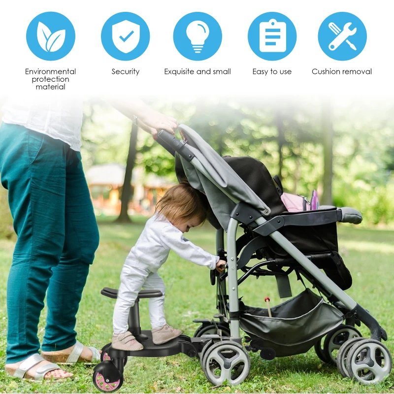 Baby Stroller Pedal Adapter Stroller Accessories Second Children Auxiliary Trailer Twins Scooter Kid Standing Plate with Seat